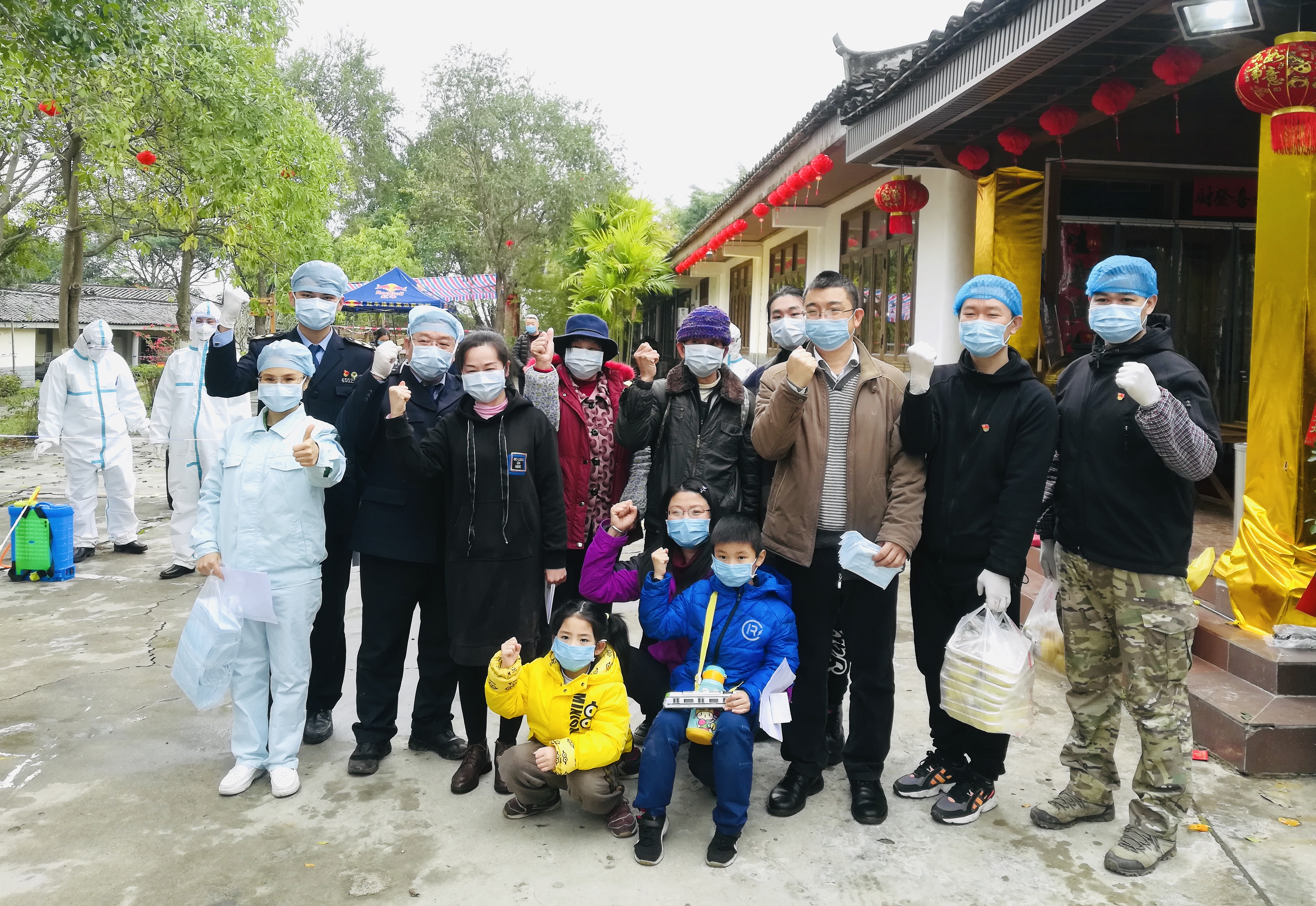 2020年2月9日,首批入住生態(tài)園公司的新冠肺炎密切接觸者解除醫(yī)學(xué)隔離觀察,圖為歡送留影