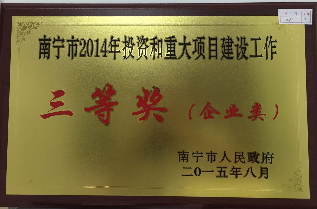 2015年8月30日,威寧投資集團獲得南寧市2014年投資和重大項目建設(shè)工作三等獎