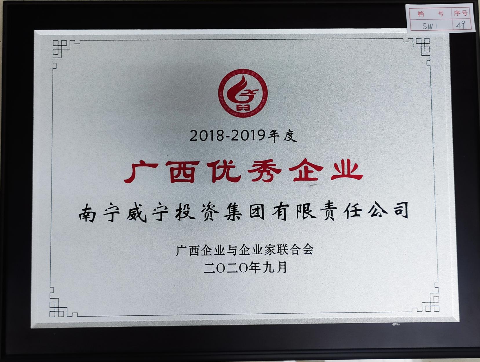 2020年9月,南寧威寧集團榮獲南寧市南寧市企業(yè)和企業(yè)家聯(lián)合會授予的2018-2019年度廣西優(yōu)秀企業(yè)