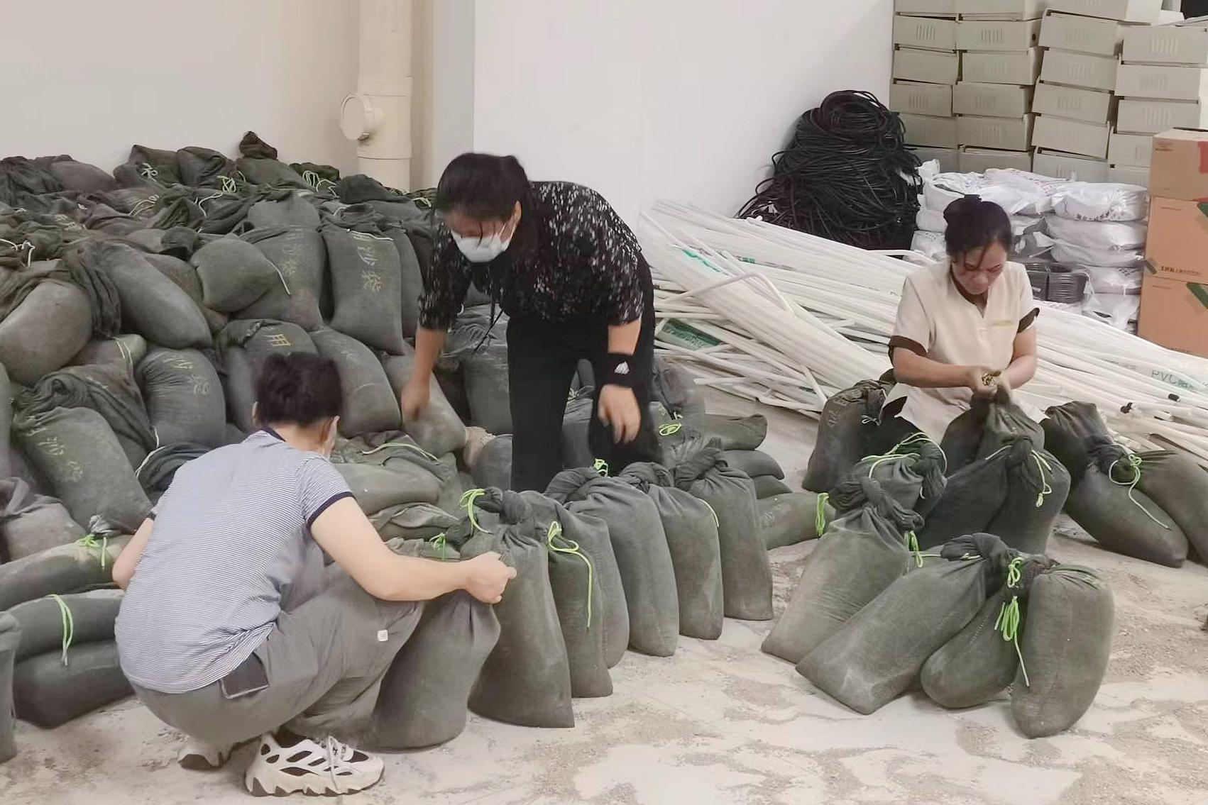 派出支援“力量”在捆扎清點(diǎn)沙袋