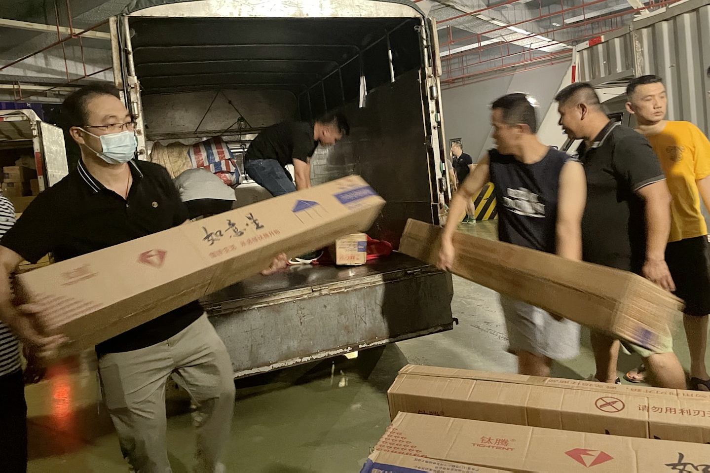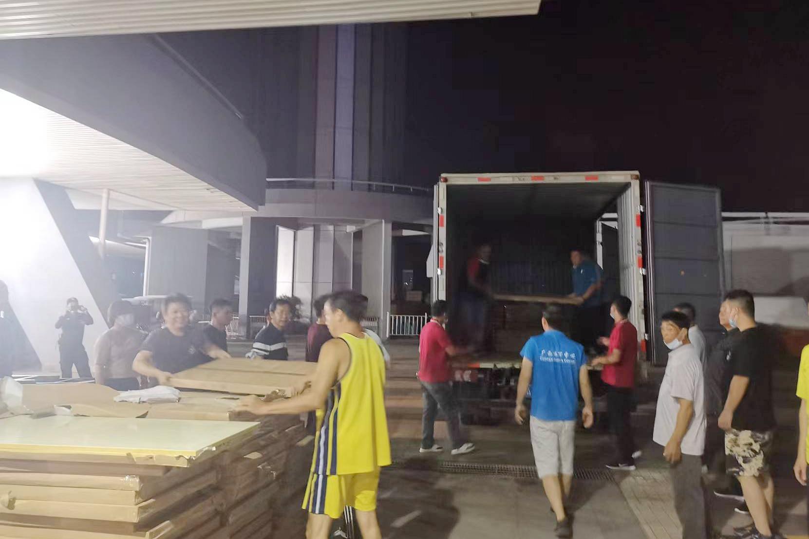 一滴滴汗水,是責(zé)任擔(dān)當(dāng)。“來(lái),擦擦汗,繼續(xù)加油干?!眲傂锻甓攷づ竦睦宵h員巫恒軍擦掉流入眼里產(chǎn)生刺痛的汗水,繼續(xù)投入到緊急工作中?,F(xiàn)場(chǎng)緊張而忙碌,大家默契配合,在悶熱的空氣里汗流浹背,但是手上的動(dòng)作卻越來(lái)越熟練,搬運(yùn)的勁頭絲毫不減。經(jīng)過(guò)近10個(gè)小時(shí)的連續(xù)奮戰(zhàn),19日凌晨2:50,隨著最后一臺(tái)物資配送車(chē)完成裝貨出發(fā),400多個(gè)核酸檢測(cè)點(diǎn)的物資配送圓滿完成。