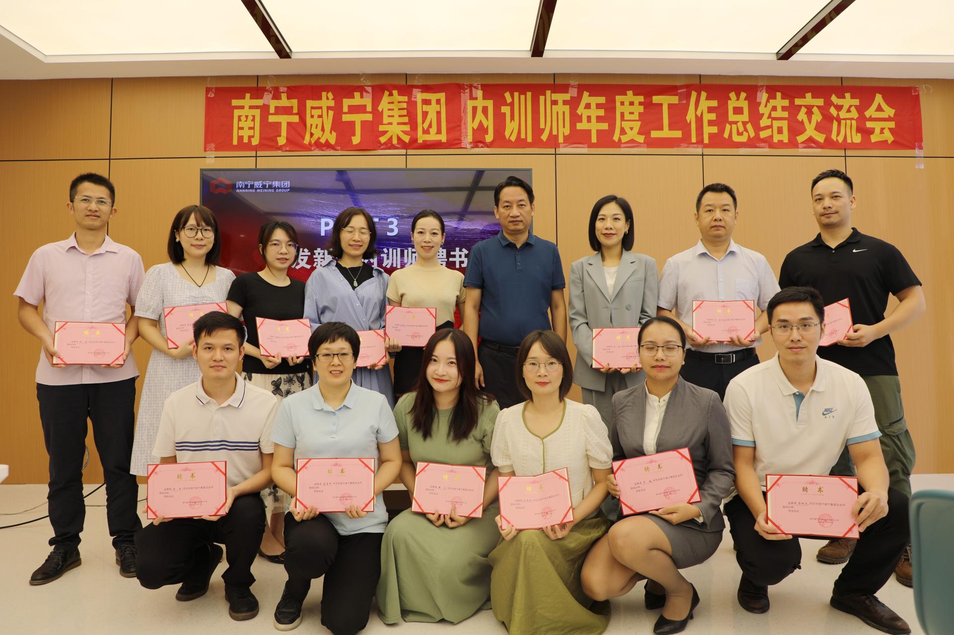 會上還宣讀了南寧威寧集團2022年內訓師聘任及晉級通知,黃欣等14名同志充實內訓師隊伍,遲穎等8名內訓師榮獲優(yōu)秀內訓師,林國城等5名晉級到中級內訓師。