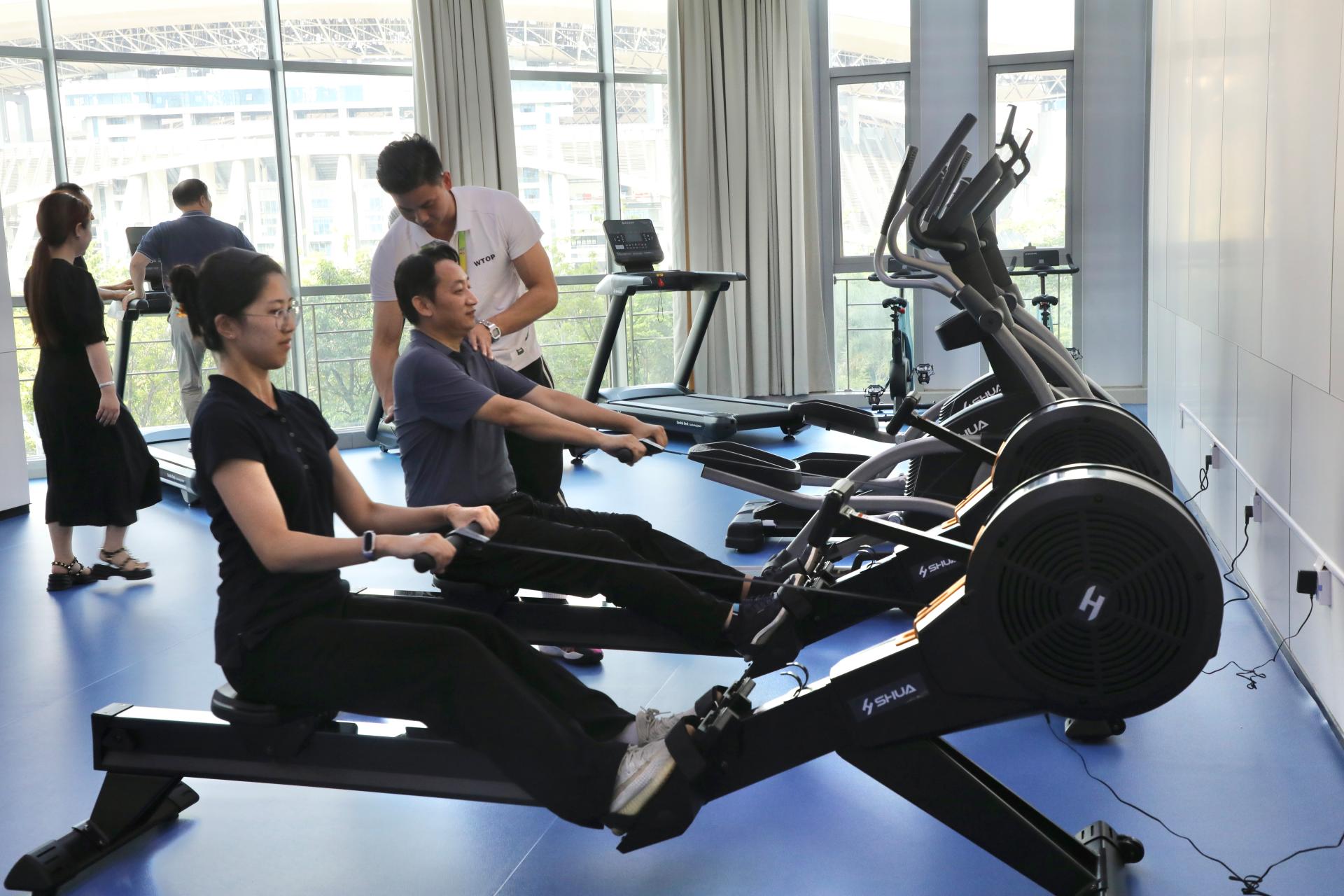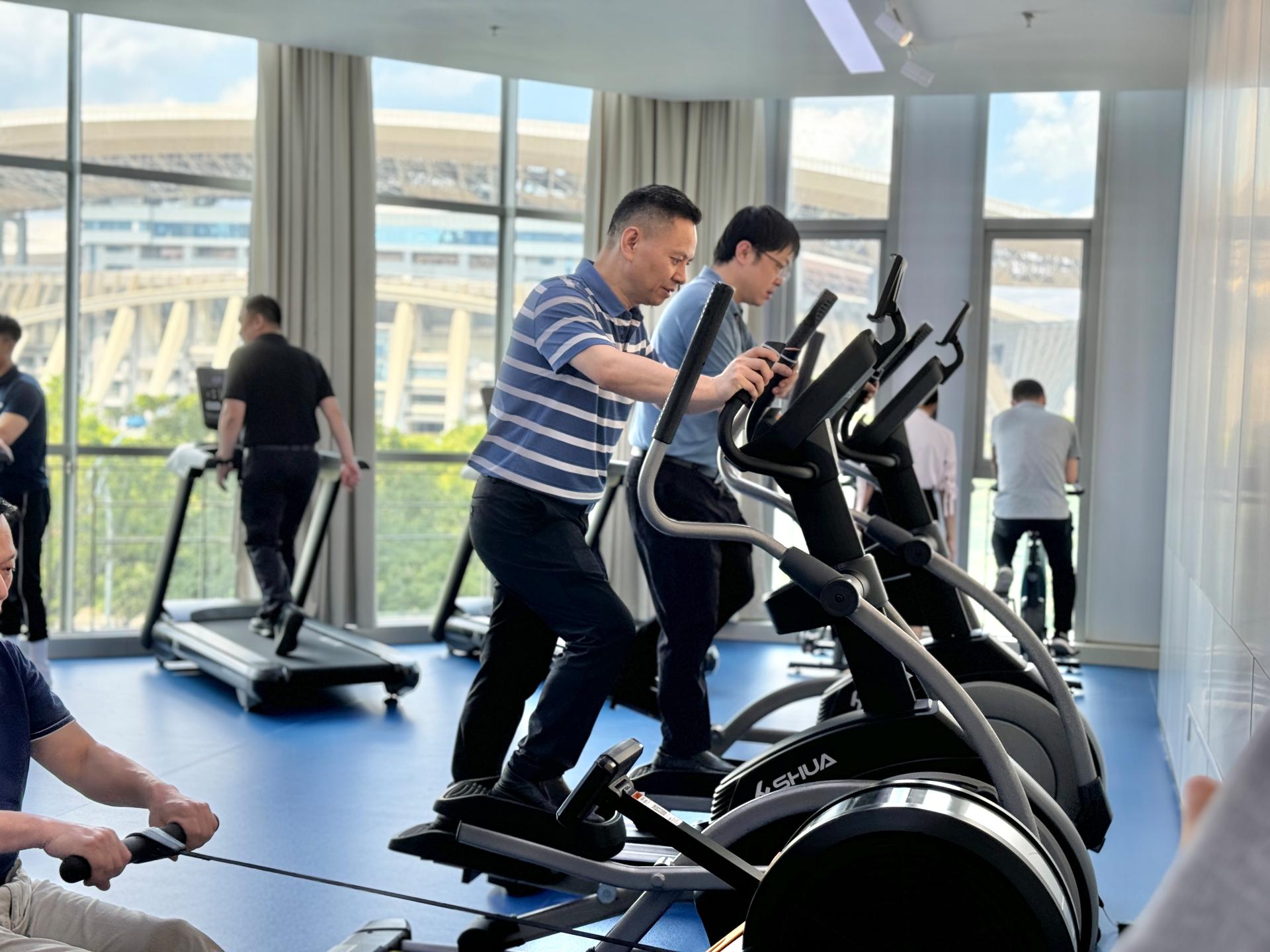 南寧威寧集團職工健身房設(shè)在威寧總部大廈二層,總面積約140㎡,配備有多功能訓(xùn)練器、跑步機、橢圓機、劃船機等多種大型運動健身器材,并設(shè)有獨立淋浴間,對全體職工免費開放。職工健身房的建成使用,向廣大職工傳遞了“全民健身,共享健康”的理念,為職工“足不出戶”即可運動健身提供了良好條件。下一步,職工健身房將不定期邀請健身教練、瑜伽教練等專業(yè)人員對職工進行現(xiàn)場指導(dǎo),為職工打造便捷、高效的運動健身場所。