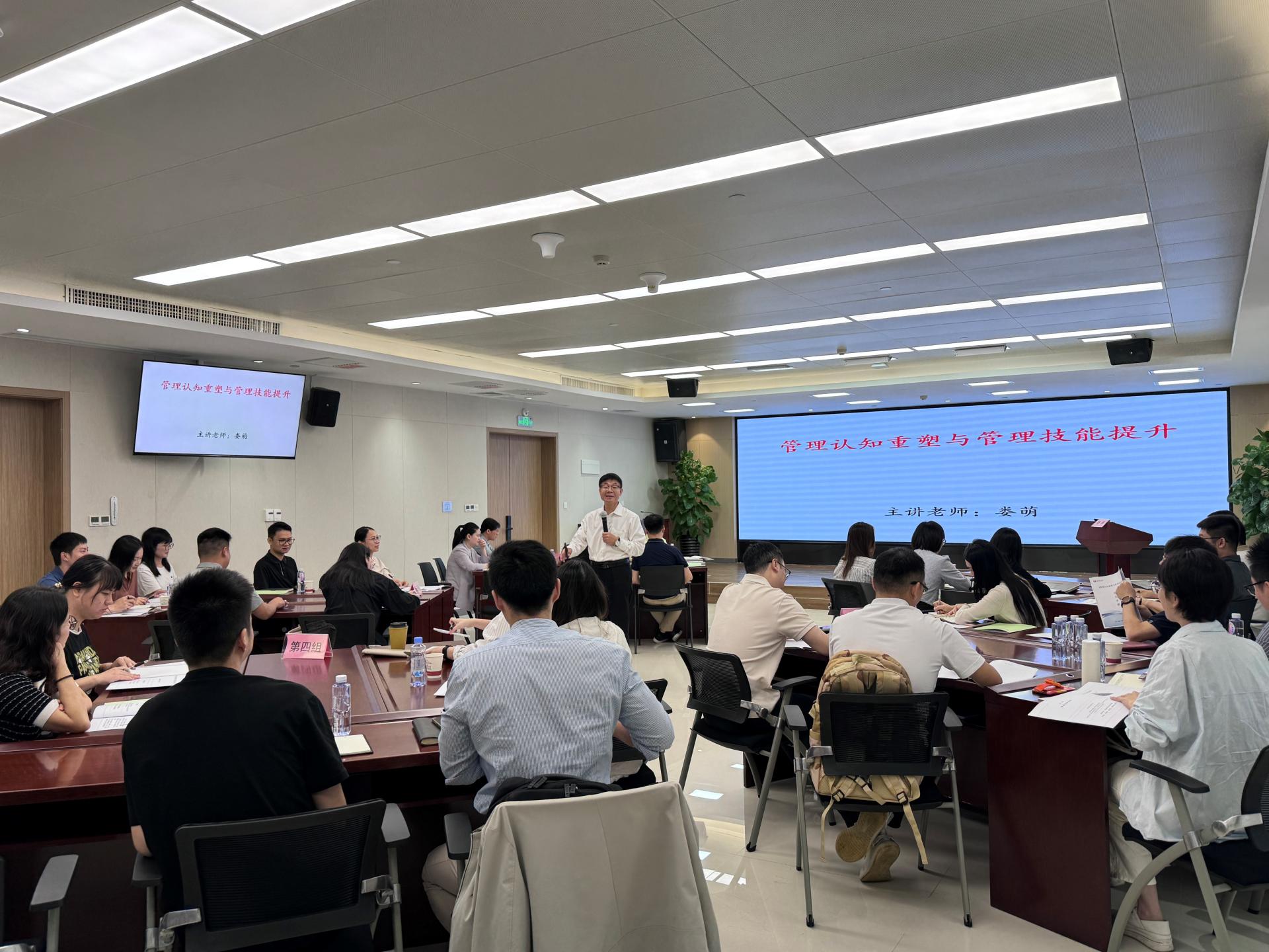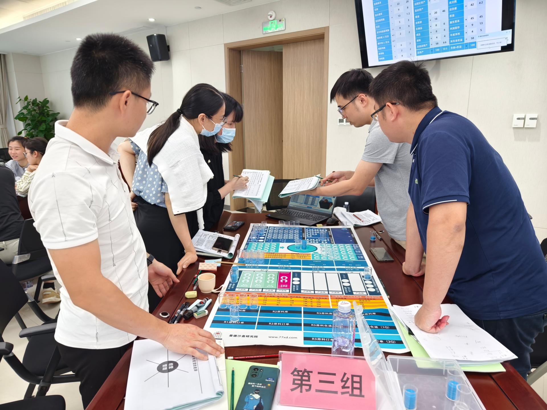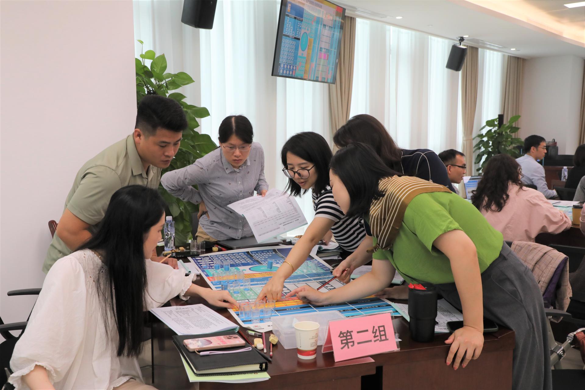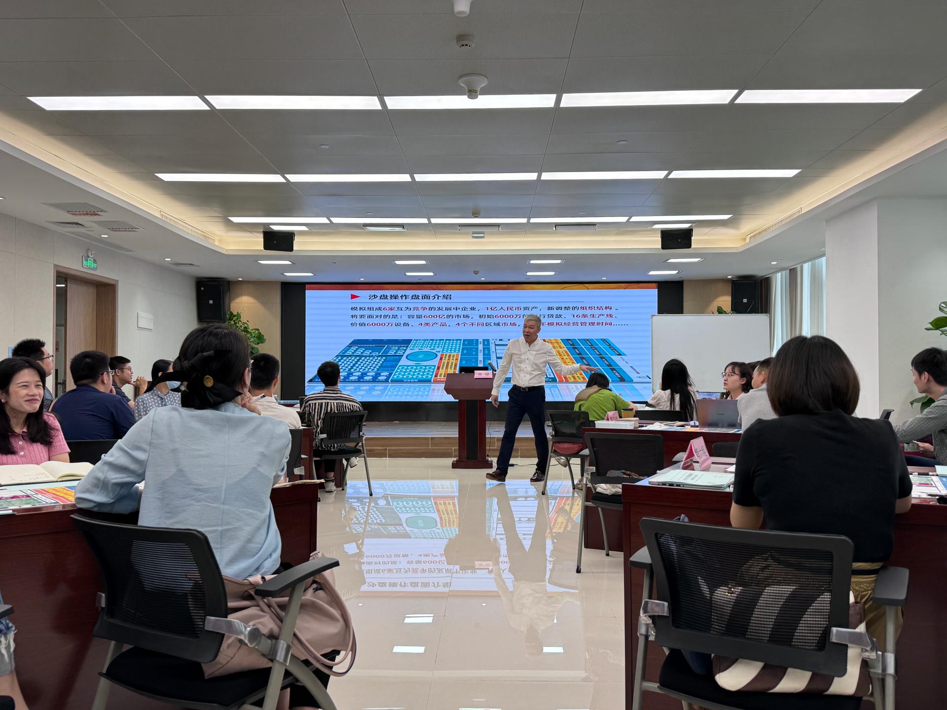 第一期培訓(xùn)課程以企業(yè)經(jīng)營管理為主題。在9日當天《管理者的“X項修煉”——管理者管理認知和技能破局之道》課程中,婁萌教授從管理認知重塑、管理自我效能提升、管理技能三個方向出發(fā)介紹了管理者的角色認知和能力提升方向,博古通今、金句頻出,通過生動精彩的講授引發(fā)了全體學(xué)員的強烈共鳴。5月10日《步步為贏——企業(yè)經(jīng)營管理敏銳度沙盤實訓(xùn)》課程中,李俊老師以數(shù)智系統(tǒng)和沙盤模型的方式模擬企業(yè)在3年中真實的經(jīng)營環(huán)境,學(xué)員們分成六組以六家獨立的公司模擬運營企業(yè)決策、市場競爭、生產(chǎn)制造、財務(wù)管理等環(huán)節(jié),讓學(xué)員能夠跳出自己所在的崗位看到企業(yè)經(jīng)營管理的各個模塊。學(xué)員們在體驗中洞察“經(jīng)營”,在實戰(zhàn)中學(xué)習(xí)“管理”,一天下來,各個“總經(jīng)理”“財務(wù)總監(jiān)”“運營總監(jiān)”們雖然燒腦卻大呼“過癮”!