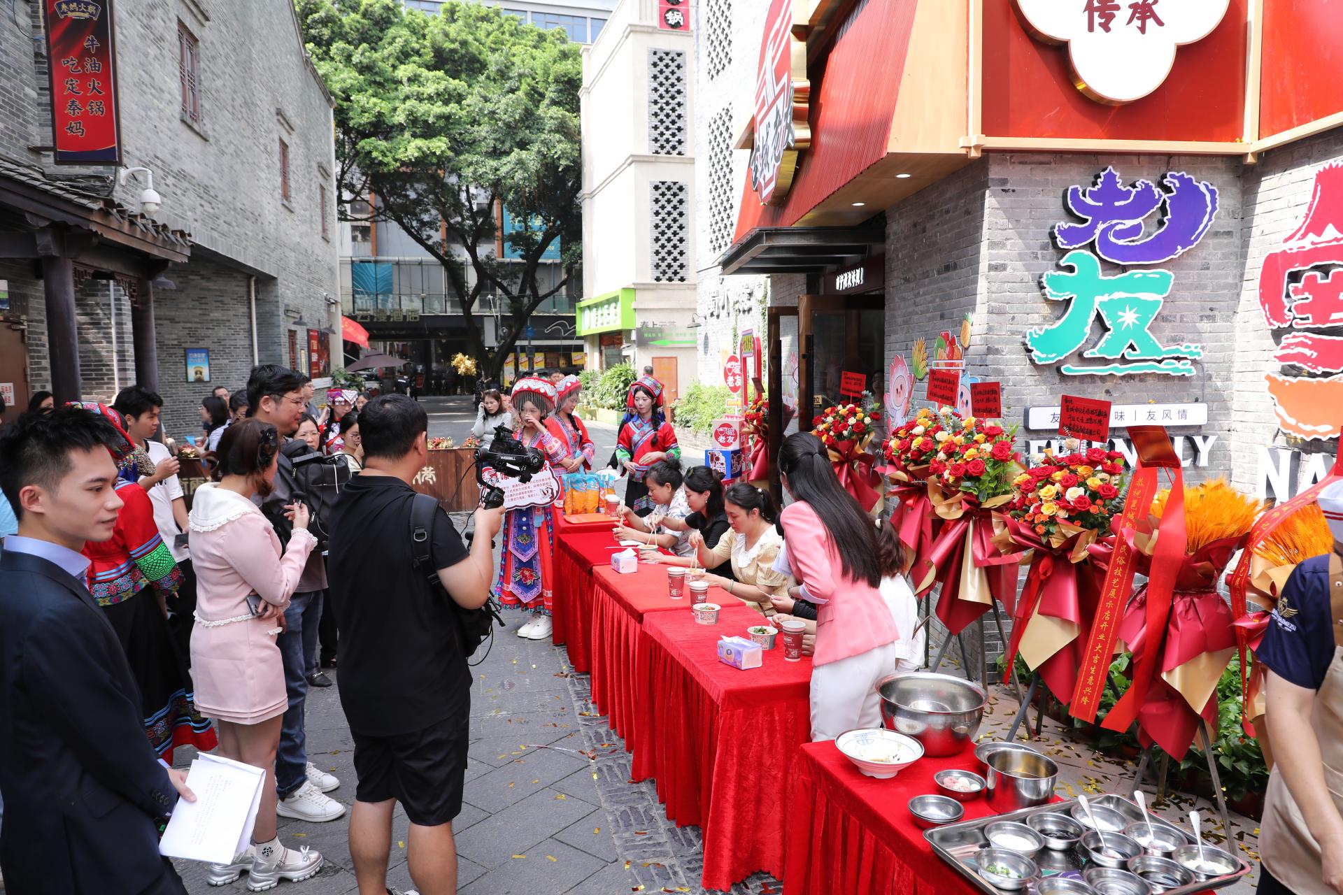 在開(kāi)火儀式現(xiàn)場(chǎng),豐富多樣的非遺體驗(yàn)和美食品鑒活動(dòng),吸引過(guò)路游客及市民駐足參與:老友粉技藝傳承人現(xiàn)場(chǎng)展現(xiàn)烹制南寧老友粉技藝,邀請(qǐng)游客品嘗正宗的老友粉;“邕城涼茶制作技藝”傳承人展示生沖雷公根涼茶制作過(guò)程;“點(diǎn)米成畫技藝”藝術(shù)家現(xiàn)場(chǎng)創(chuàng)作,為游客獻(xiàn)上視覺(jué)上的非遺技藝“大餐”。同時(shí),現(xiàn)場(chǎng)還設(shè)置了“嗦粉大作戰(zhàn)”“投食材互動(dòng)”“打卡有禮”等趣味互動(dòng)游戲,讓現(xiàn)場(chǎng)市民在互動(dòng)游玩中體驗(yàn)非遺美食文化。店內(nèi)豐富的文物器皿、精心設(shè)計(jì)的打卡點(diǎn)、豐富多樣的非遺美食和南寧名小吃,為現(xiàn)場(chǎng)市民提供了一段沉浸式的民俗技藝展示店參觀之旅。