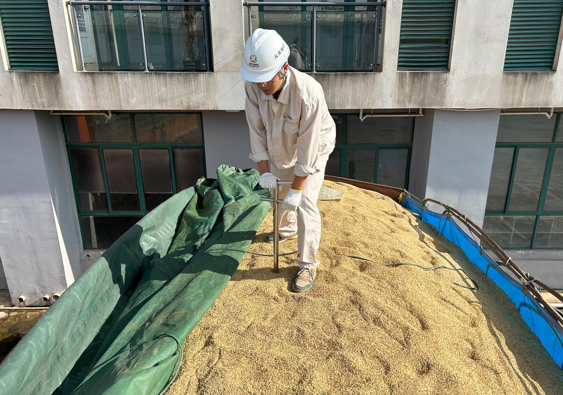 自夏糧入庫(kù)工作啟動(dòng)以來,儲(chǔ)備糧公司始終保持和時(shí)間賽跑的姿態(tài),主動(dòng)作為,克服時(shí)間緊、任務(wù)重、氣溫高等困難,在保證質(zhì)量的同時(shí),全力提升夏糧入庫(kù)工作效率,保障糧食顆粒歸倉(cāng)。搶抓入庫(kù)時(shí)間。今年以來,沙井糧庫(kù)、五象糧庫(kù)共開設(shè)8個(gè)入庫(kù)作業(yè)口,實(shí)現(xiàn)日入庫(kù)量最高達(dá)600余噸。投入將近50萬元用于購(gòu)置扒谷機(jī)、輸送機(jī)等配套入庫(kù)設(shè)備,實(shí)現(xiàn)多點(diǎn)多線同步入庫(kù)作業(yè)。同時(shí),堅(jiān)持早開市晚收秤,實(shí)行輪班制,做到來糧隨到隨收,確保來糧不壓車、不過夜。糧庫(kù)工作人員主動(dòng)犧牲周末、節(jié)假日時(shí)間,加班加點(diǎn),克服高溫酷暑,連續(xù)多日?qǐng)?jiān)守奮戰(zhàn)在入庫(kù)現(xiàn)場(chǎng)。搶抓入庫(kù)效率。為避免暴雨、臺(tái)風(fēng)等極端天氣影響,儲(chǔ)備糧公司通過控制來糧節(jié)奏、定制擋雨棚等方式,確保連續(xù)不間斷安全入庫(kù)作業(yè),進(jìn)一步提升入庫(kù)效率。嚴(yán)控入庫(kù)質(zhì)量。公司嚴(yán)格按照檢驗(yàn)標(biāo)準(zhǔn)和規(guī)范,落實(shí)“一車一定檢”“入庫(kù)過程隨機(jī)抽檢”等質(zhì)量管控措施,同時(shí)增設(shè)除雜設(shè)備,去除來糧雜質(zhì),把好入庫(kù)質(zhì)量關(guān)口,自主檢驗(yàn)入庫(kù)糧食質(zhì)量合格率達(dá)100%。