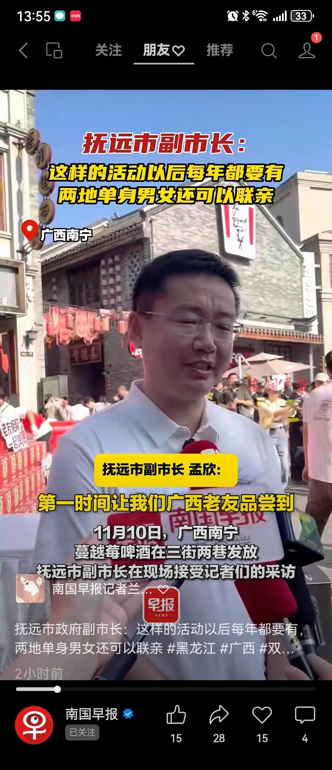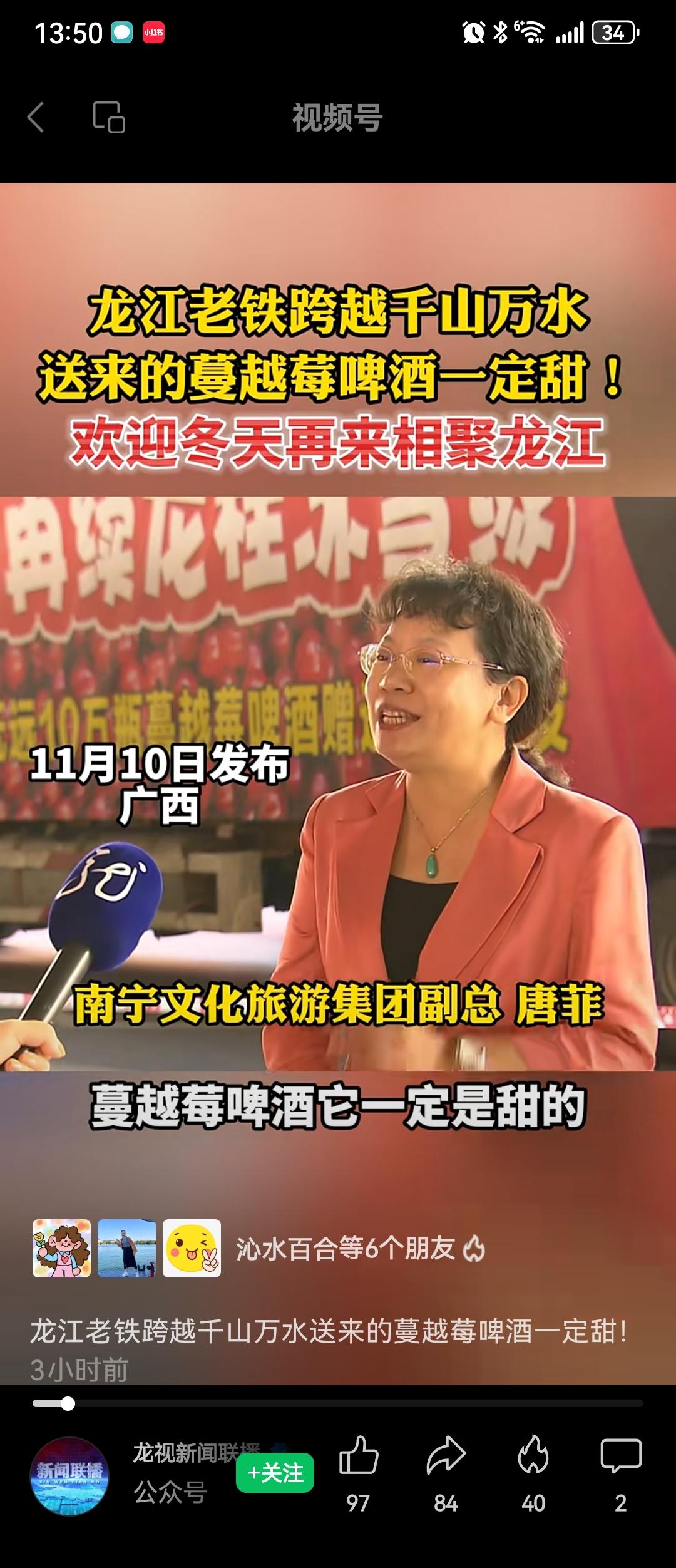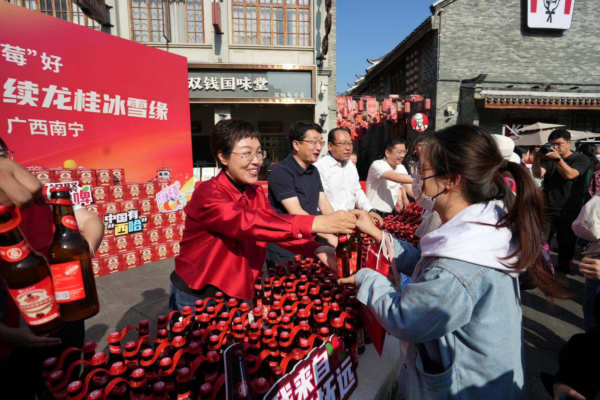值得一提的是,南寧文旅集團(tuán)不僅作為南寧市國有企業(yè)代表,組織和執(zhí)行了邕州古城和廣西體育中心蔓越莓啤酒發(fā)放的工作,讓這場“莓”妙奇緣成為了南寧文旅集團(tuán)耕耘文化交融的美好序曲。同時(shí)還以蔓越莓啤酒為媒,牽動兩地產(chǎn)業(yè)互聯(lián)互通,后續(xù)奏響的“莓”妙奇緣還將體現(xiàn)在蔓越莓下游產(chǎn)業(yè)布局在南寧文旅市場的發(fā)展,從“南北CP”的文旅互動到產(chǎn)業(yè)聯(lián)動的常態(tài)化運(yùn)行。發(fā)放活動當(dāng)天,南寧文旅集團(tuán)、撫遠(yuǎn)市旅投集團(tuán)和各有關(guān)企業(yè)在邕州古城·三街兩巷邕城印記民俗中心簽署產(chǎn)業(yè)合作意向書。南寧文旅集團(tuán)與蔓越莓啤酒生產(chǎn)廠家撫遠(yuǎn)市撫遠(yuǎn)鎮(zhèn)唯美莊園簽訂了蔓越莓啤酒的廣西總代理,而撫遠(yuǎn)市黑瞎子島文化旅游投資集團(tuán)有限公司也與南寧銀河有限責(zé)任公司簽訂了 “邕城老友”袋裝老友粉在撫遠(yuǎn)市的代理委托書,廣西和黑龍江兩地通過一次次的相互奔赴,將各自的特產(chǎn)、文化進(jìn)行更深入的交流互通,讓更多的廣西老友品嘗到東北味道,也讓東北老鐵感受到來自南寧老友粉的魅力。