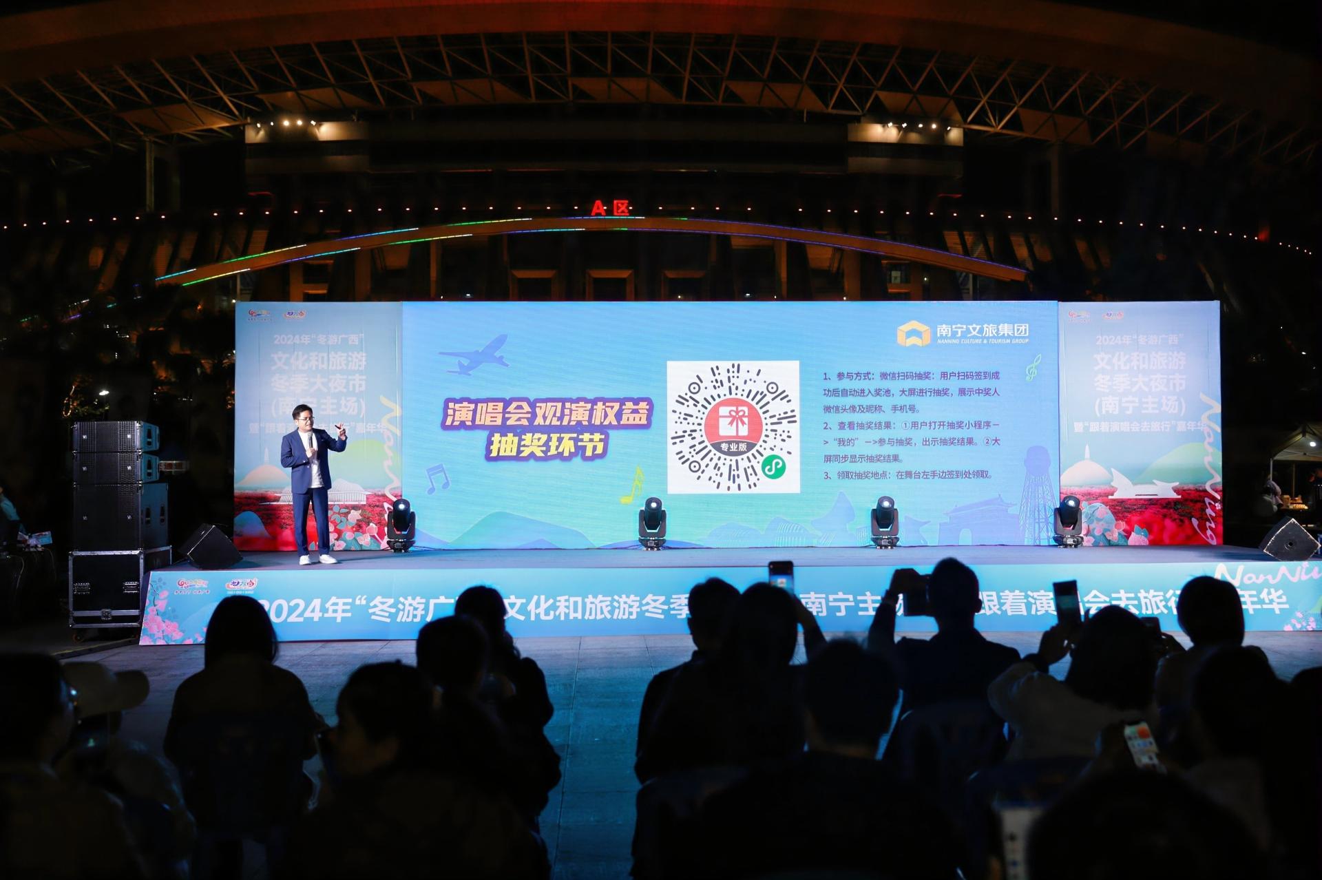 隨著演唱會(huì)經(jīng)濟(jì)市場持續(xù)繁榮,“為一場演出而奔赴一座城”已成為撬動(dòng)城市文旅消費(fèi)的“金鑰匙”。為提振歲末年初文旅消費(fèi)市場,全方位展示廣西和南寧特色的民族文化品牌形象,以周深演唱會(huì)為契機(jī),由廣西壯族自治區(qū)文化和旅游廳、南寧市人民政府主辦,南寧市文化廣電體育和旅游局、商務(wù)局以及良慶區(qū)人民政府承辦,良慶區(qū)文化廣電體育和旅游局、南寧威寧文化體育發(fā)展有限公司協(xié)辦的2024年“冬游廣西”文化和旅游冬季大夜市(南寧主場)暨“跟著演唱會(huì)去旅行”嘉年華活動(dòng)在廣西體育中心舉行。