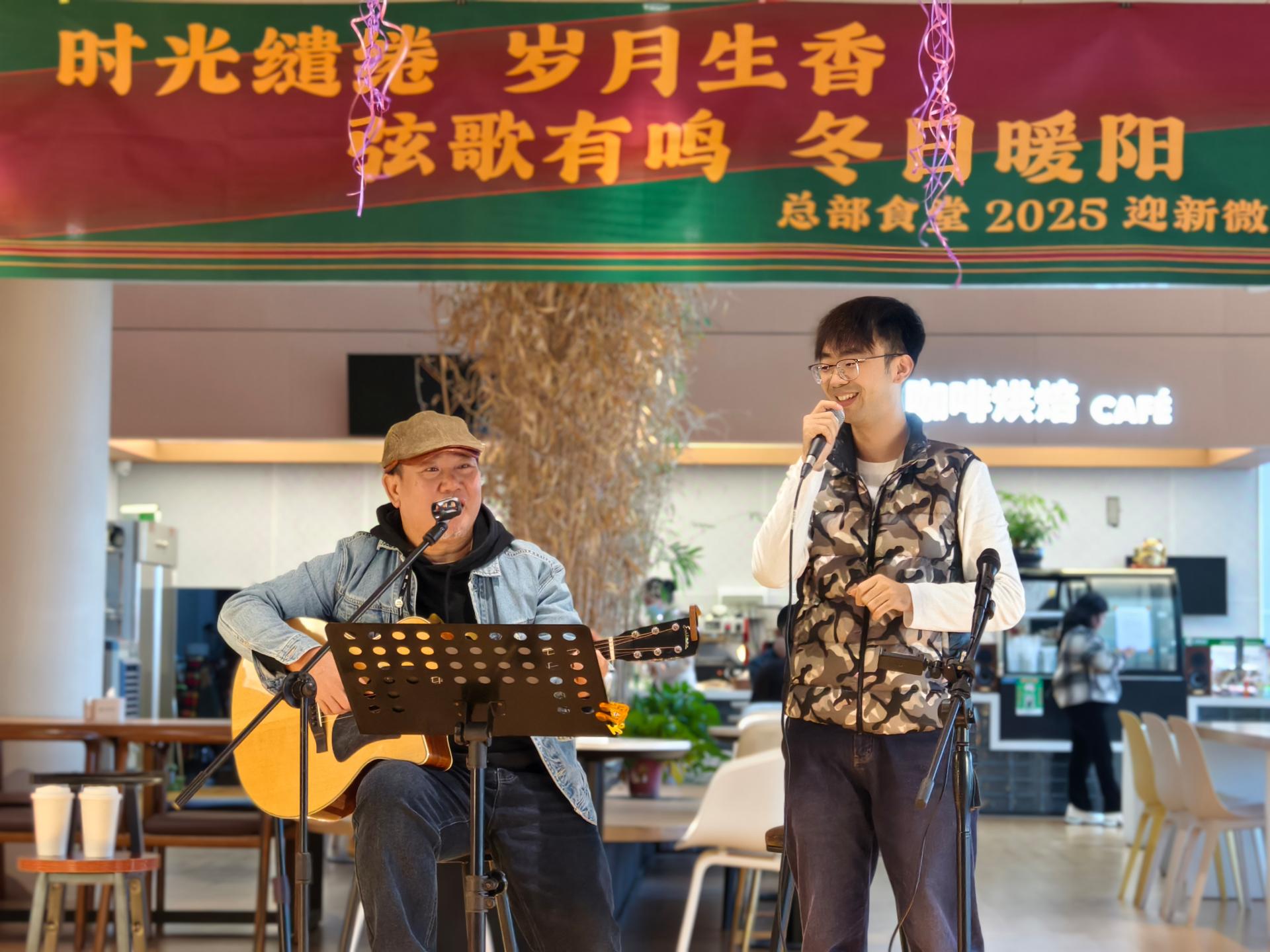 在午餐時(shí)間,隨著演出活動的開始,一首首精心編排的歌唱節(jié)目輪番上演,特邀嘉賓倉庚樂隊(duì)以飽滿的熱情,將獨(dú)特的嗓音融入到歌聲之中。《最愛是誰》《一生何求》《匆匆》等系列膾炙人口的歌曲帶動了現(xiàn)場的熱烈氛圍,輕松愉悅的曲調(diào)更是讓職工身心得到了愉悅與放松?,F(xiàn)場職工在沉浸式觀演的同時(shí),品嘗著美味的午餐,歡喜之情溢于言表。