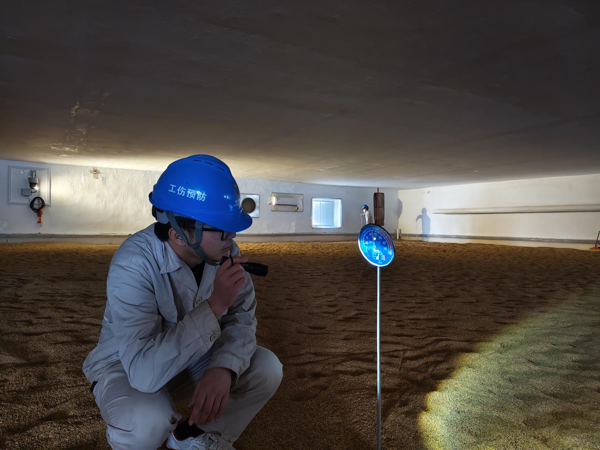 針對春季獨(dú)特氣候特性,儲備糧公司堅(jiān)持“預(yù)防為主、綜合防治”的常態(tài)化監(jiān)測機(jī)制,嚴(yán)格執(zhí)行“三查三測”制度(即查糧溫、倉溫、蟲害,測水分、品質(zhì)、氣體),重點(diǎn)排查倉房漏雨、返潮、結(jié)露等隱患問題。依托智能化監(jiān)測系統(tǒng),動(dòng)態(tài)調(diào)整糧溫、水分、蟲害等關(guān)鍵指標(biāo)的監(jiān)測頻次,實(shí)現(xiàn)隱患早發(fā)現(xiàn)、早處置。為監(jiān)控得到更精準(zhǔn)數(shù)據(jù)支撐,在所有政策性糧食倉庫構(gòu)建立體監(jiān)測智能系統(tǒng)。在倉內(nèi)部署溫濕度感應(yīng)陣列,在糧堆植入200余個(gè)高精度測溫探頭,如同“神經(jīng)末梢”實(shí)時(shí)精準(zhǔn)地采集糧溫?cái)?shù)據(jù),一旦糧溫超出設(shè)定數(shù)值將發(fā)出警示,為儲備糧安全存儲提供堅(jiān)實(shí)有力保障。