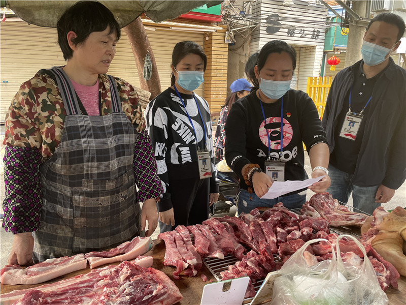 同一時(shí)間,威寧市場(chǎng)公司各所屬農(nóng)貿(mào)市場(chǎng)人來(lái)人往,肉菜、果蔬、水產(chǎn)等農(nóng)副產(chǎn)品齊全貨源充足,菜品價(jià)格較比春節(jié)假期有了明顯回落,一派忙碌卻不嘈雜的交易場(chǎng)景令人舒心。各市場(chǎng)大門設(shè)崗進(jìn)行入場(chǎng)人員體溫檢測(cè)、市場(chǎng)清潔消毒,毫不放松做好常態(tài)化疫情防控工作。