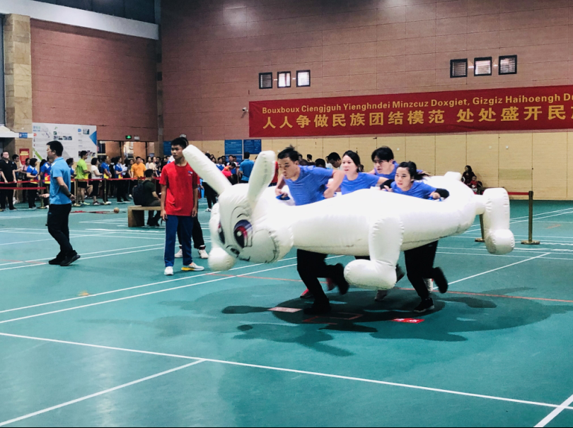 現(xiàn)場設(shè)置有我型我秀、螃蟹過河、時(shí)代巨輪、壯鄉(xiāng)竹棒球、眾星捧月和袋鼠運(yùn)瓜等競賽項(xiàng)目。威寧市場公司共派出15名隊(duì)員參賽,在張瑩、陳小勤兩位老隊(duì)員的帶領(lǐng)下,威寧市場公司的隊(duì)員們個(gè)個(gè)都是斗志昂揚(yáng)、敢打敢拼,表現(xiàn)出色,以小組第二的成績晉級(jí)決賽。