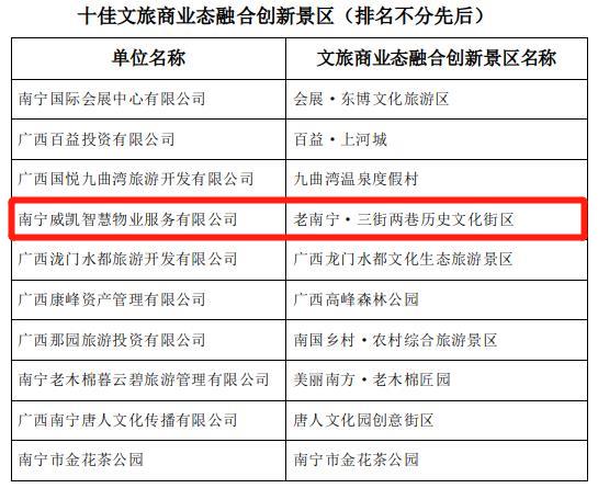近日,由南寧市文化廣電和旅游局主辦、南寧市旅游協(xié)會(huì)承辦的2021年南寧市“十佳文旅項(xiàng)目(品牌)”評(píng)選活動(dòng)落下帷幕。老南寧·三街兩巷歷史文化街區(qū)在此次評(píng)選中榮獲“十佳新型文化空間”“十佳文旅商業(yè)態(tài)融合創(chuàng)新景區(qū)”稱號(hào)。這是今年繼獲得“首批國家級(jí)旅游休閑街區(qū)”稱號(hào)后又一次斬獲殊榮。