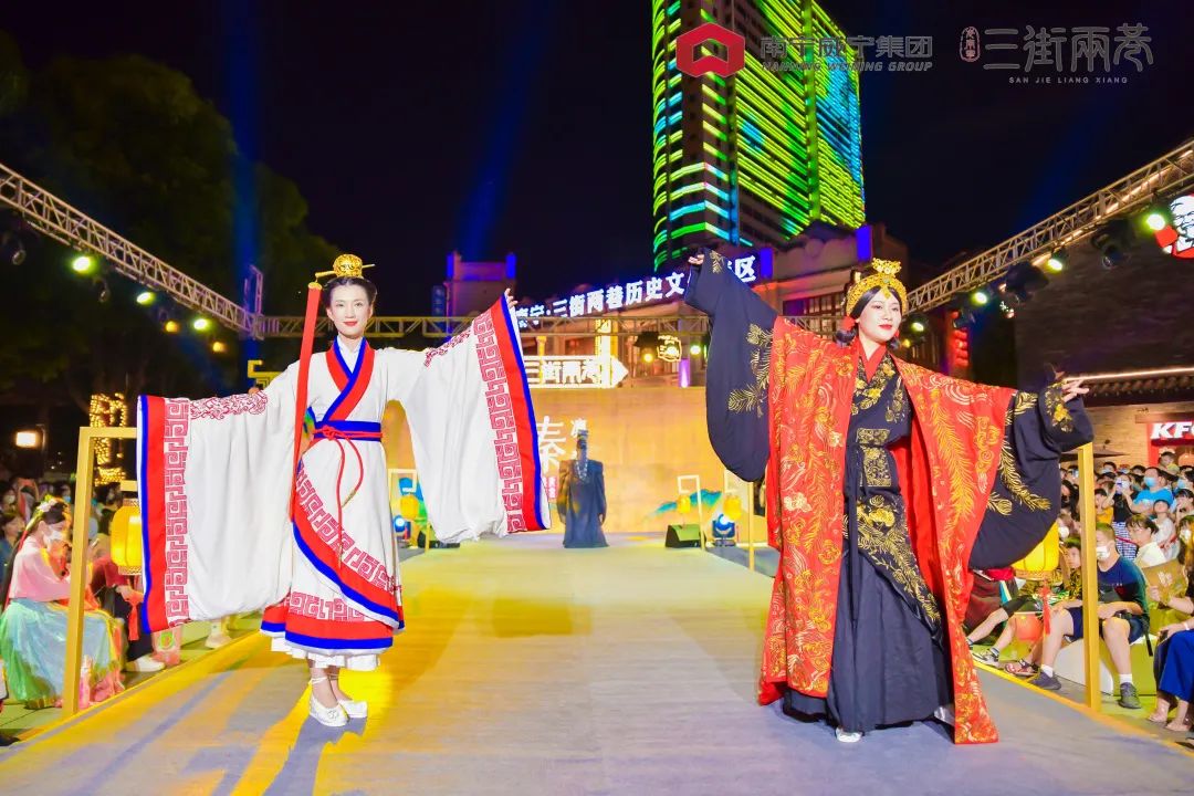 威邕城市運(yùn)營開展頭腦風(fēng)暴,創(chuàng)新策劃舉辦活動(dòng)。“鴻福臨門邕城盛市”三街兩巷二期新街開放暨倉西門揭幕儀式系列活動(dòng)、三街兩巷新春嘉年華沉浸式國風(fēng)系列活動(dòng)、二期開街活動(dòng)暨首屆國風(fēng)文化節(jié)等大型主題活動(dòng)共計(jì)10余次,得到中央廣播電視總臺(tái)、廣西日報(bào)、廣西電視臺(tái)、南寧市主流媒體等廣泛報(bào)道,獲得社會(huì)各界與廣大游客的廣泛關(guān)注。國慶期間,“三街兩巷首屆國風(fēng)文化節(jié)”活動(dòng),游客接待量超70萬人次,同比2021年國慶假期增長40%,營業(yè)額超5000萬元,同比2021年國慶假期增長317%。主題活動(dòng)的成功舉辦,促進(jìn)了街區(qū)人流量、消費(fèi)量“雙量”提升,極大的提升了商戶的經(jīng)營信心,促進(jìn)了招商工作的推進(jìn)。(圖5.三街兩巷2022年國慶活動(dòng))
