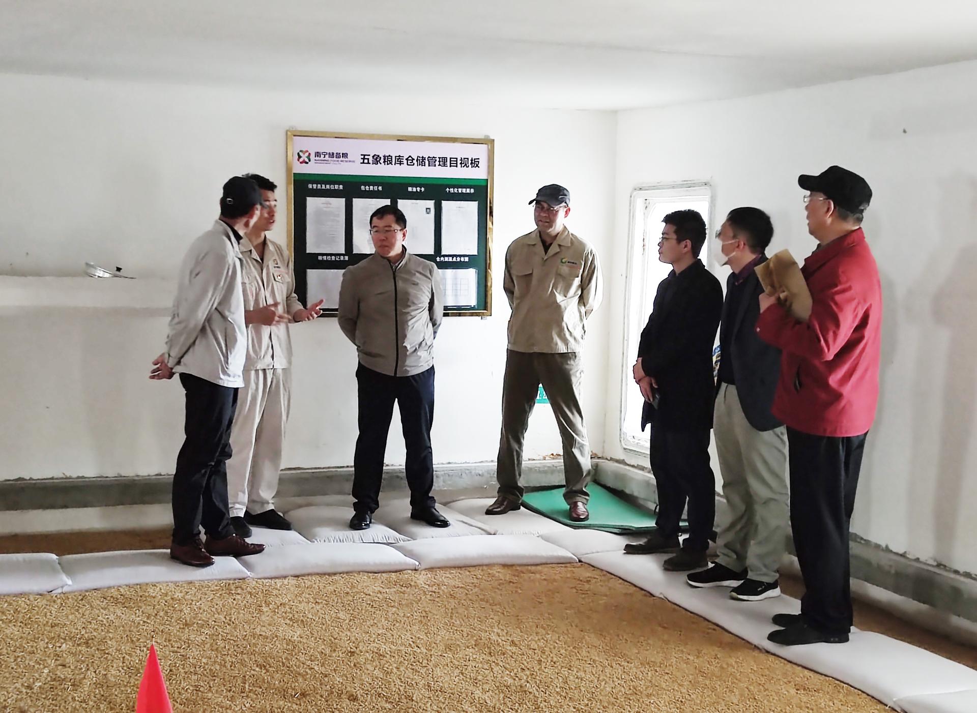 近日,河北工業(yè)大學(xué)糧食經(jīng)濟、倉儲保管技術(shù)和糧食產(chǎn)業(yè)化等方面的專家教授到威寧市場公司監(jiān)管單位南寧市儲備糧公司開展糧食安全保障工作考察調(diào)研。南寧市糧食和物資儲備局黨組成員、副局長楊曉東、許候境,威寧市場公司副總經(jīng)理、南寧市儲備糧公司黨委書記、董事長韋洲民,儲備糧公司副總經(jīng)理朱蓮清、顧問盧德杰陪同考察。