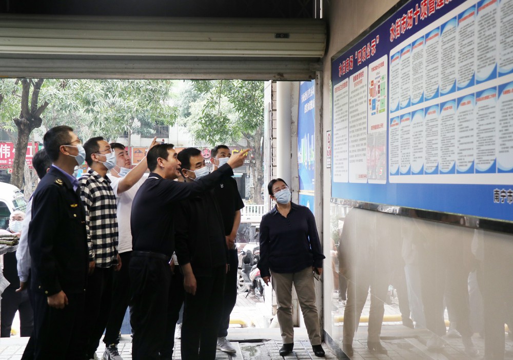 調(diào)研中,考察組深入水街市場(chǎng)各行業(yè),實(shí)地了解市場(chǎng)標(biāo)準(zhǔn)化升級(jí)改造、市場(chǎng)水產(chǎn)區(qū)及活禽宰殺區(qū)三區(qū)分離設(shè)置、農(nóng)殘快速檢測(cè)、市場(chǎng)環(huán)境整治及創(chuàng)衛(wèi)氛圍營(yíng)造等工作開(kāi)展情況,仔細(xì)查看水街市場(chǎng)創(chuàng)衛(wèi)工作臺(tái)賬及記錄,并圍繞水街市場(chǎng)創(chuàng)衛(wèi)工作特色經(jīng)驗(yàn)、亮點(diǎn)舉措及長(zhǎng)效化管理機(jī)制與市場(chǎng)負(fù)責(zé)人進(jìn)行深入交流探討。