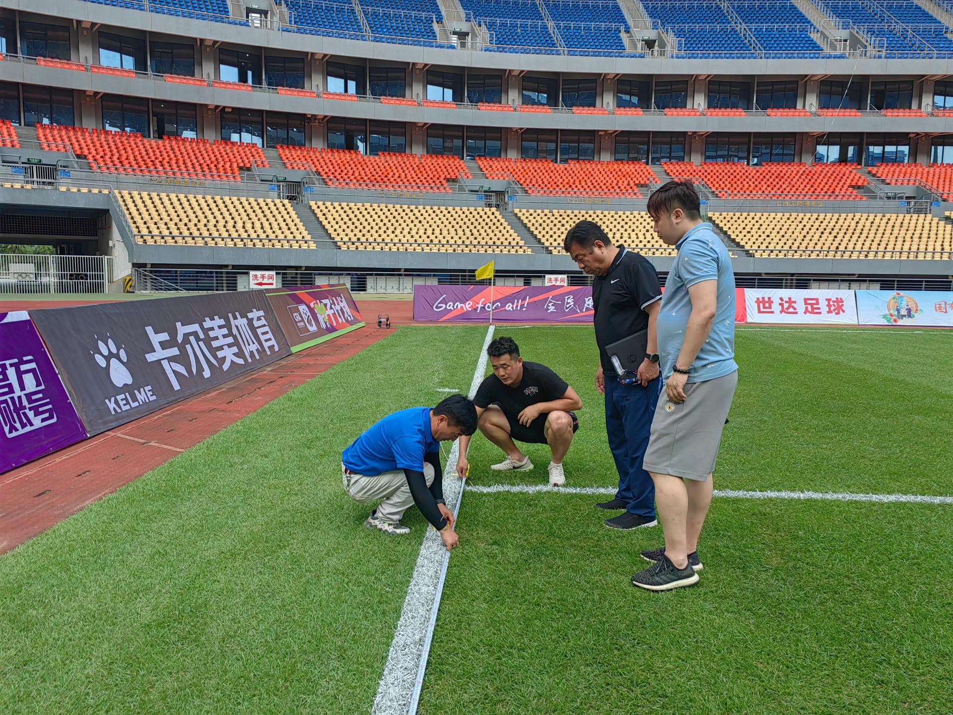 與此同時(shí),文體公司各部門和維保單位從開(kāi)賽前一周起,就按中國(guó)足協(xié)認(rèn)證的相關(guān)標(biāo)準(zhǔn)對(duì)草坪進(jìn)行了剪草、壓草等一系列養(yǎng)護(hù)工作,安裝比賽專用球門、設(shè)置現(xiàn)場(chǎng)轉(zhuǎn)播席位、安排好直播車和配合架設(shè)直播臺(tái)等工作,一切場(chǎng)地布置都按照國(guó)際A級(jí)賽事標(biāo)準(zhǔn)進(jìn)行。威凱物業(yè)也安排了對(duì)使用區(qū)域觀眾席和通道、洗手間的保潔。