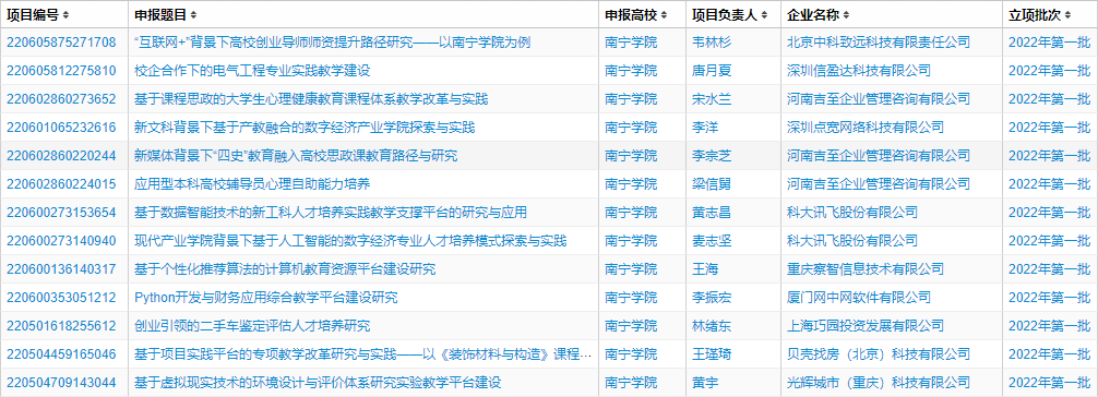 2022年南寧學院獲產(chǎn)學合作協(xié)同育人項目名單