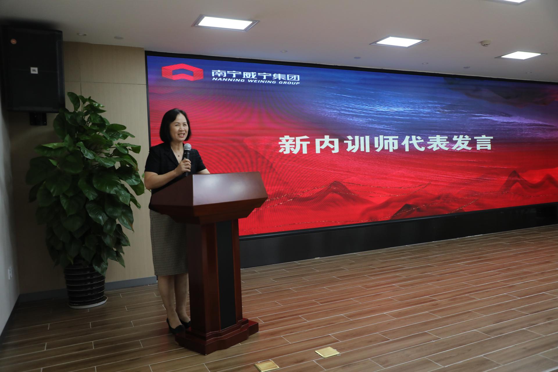 會上宣讀了南寧威寧集團2023年內(nèi)訓師聘任及晉級通知,馬麗賢等20名同志作為新聘內(nèi)訓師充實內(nèi)訓師隊伍,何俊峰等8名內(nèi)訓師榮獲年度優(yōu)秀內(nèi)訓師,張興信等4名內(nèi)訓師晉級到中級內(nèi)訓師。南寧學院、威寧房地產(chǎn)開發(fā)集團新聘內(nèi)訓師代表進行了表態(tài)發(fā)言。
