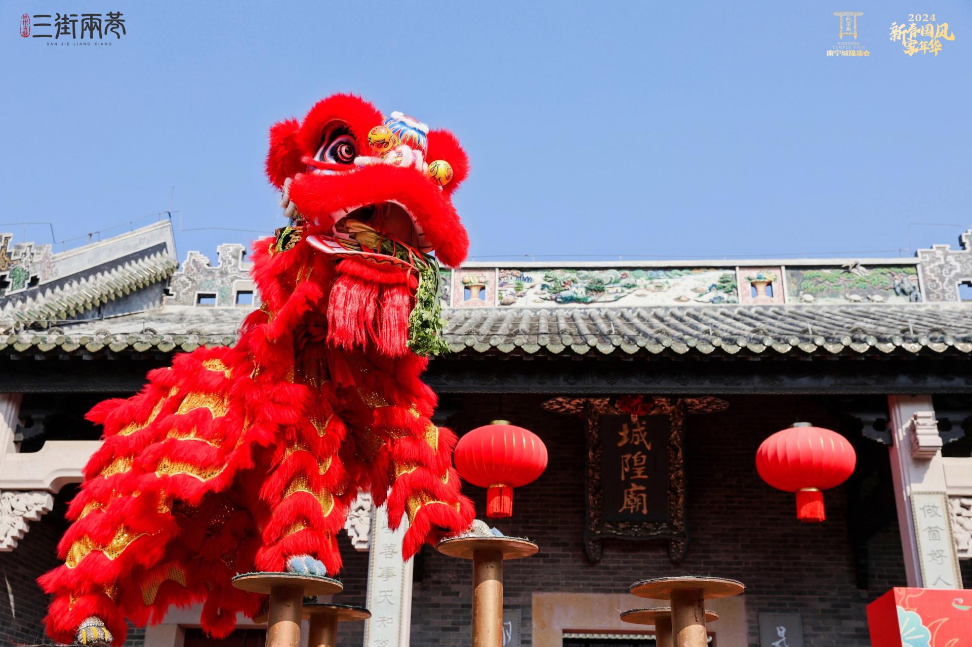 金龍賀歲,瑞氣盈門。正月初始,邕州古城·三街兩巷聚焦新春年俗年味,以“邕州古城 龍行賀新”為主題,傾情打造2024年南寧城隍廟會暨邕州古城新春國風(fēng)家年華系列活動。南寧城隍廟會作為本次邕州古城·三街兩巷新春系列活動的重頭戲,將傳統(tǒng)“拜城隍”、舞獅舞龍、財神巡游、新年許愿快閃、民間絕技表演、非遺體驗、文創(chuàng)好物市集、特色美食等內(nèi)容相結(jié)合,重現(xiàn)舊時熱鬧非凡的廟會場景,打造出一場屬于南寧人的廟會文化盛宴。