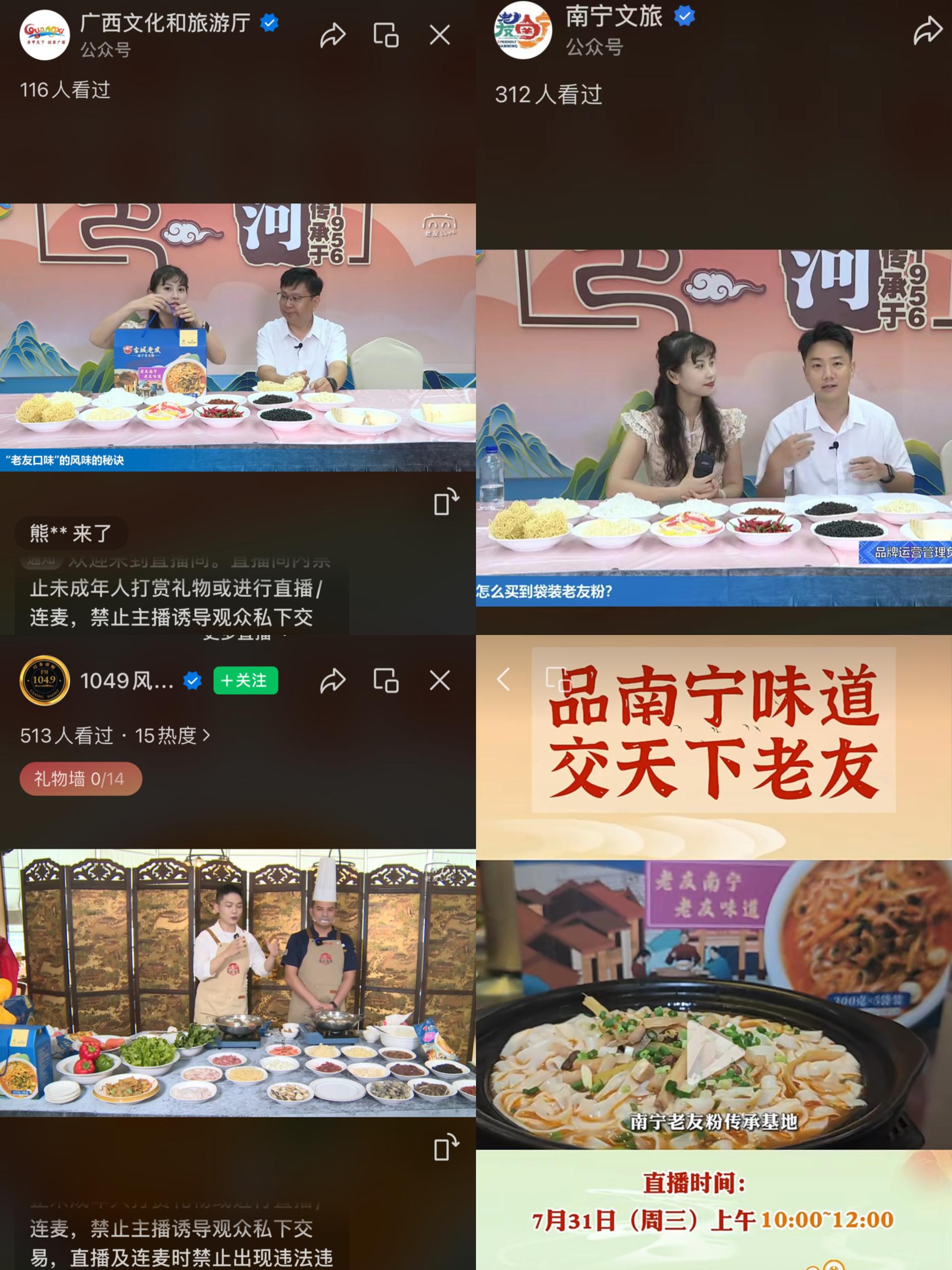 為進一步助推南寧老友粉產(chǎn)業(yè)高質(zhì)量發(fā)展,近日,南寧市融媒體中心“尋味南寧”節(jié)目組走進自治區(qū)非物質(zhì)文化遺產(chǎn)代表性項目“南寧老友粉”傳承基地——銀河大酒店,直播推薦南寧老友粉產(chǎn)業(yè)。本場直播由環(huán)球時報、廣西文旅、南寧文旅等視頻號,南寧云、南寧新聞網(wǎng)等快手賬號以及新聞夜班抖音號等多個新媒體渠道同步面向全國直播,整場直播間熱度達3000萬人次。