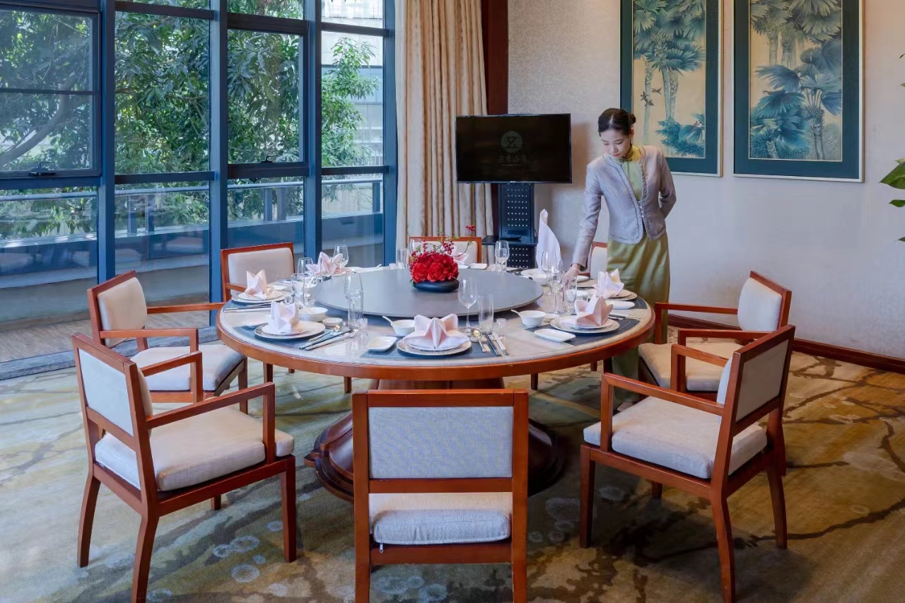 培訓(xùn)內(nèi)容涵蓋了服務(wù)禮儀、菜品知識(shí)、顧客心理分析、突發(fā)情況應(yīng)急處理等多個(gè)方面。從接待賓客的禮儀禮貌到專業(yè)的語言服務(wù)技巧,中餐廳相關(guān)負(fù)責(zé)人結(jié)合員工在實(shí)際接待服務(wù)中的真實(shí)場景,讓員工積極參與角色扮演,互相觀察與學(xué)習(xí),充分加深服務(wù)場景的印象,在現(xiàn)實(shí)接待場景中能嚴(yán)格按照餐廳服務(wù)流程標(biāo)準(zhǔn)去對客服務(wù),不斷提升接待服務(wù)品質(zhì)。在開展培訓(xùn)的過程中,五象山莊行政總廚也對即將上市的秋季新菜品進(jìn)行講解,例如每道菜品的創(chuàng)意靈感、烹飪方式等細(xì)節(jié),旨在通過理論與實(shí)踐相結(jié)合的方式,全面提升參訓(xùn)服務(wù)人員的待客能力。