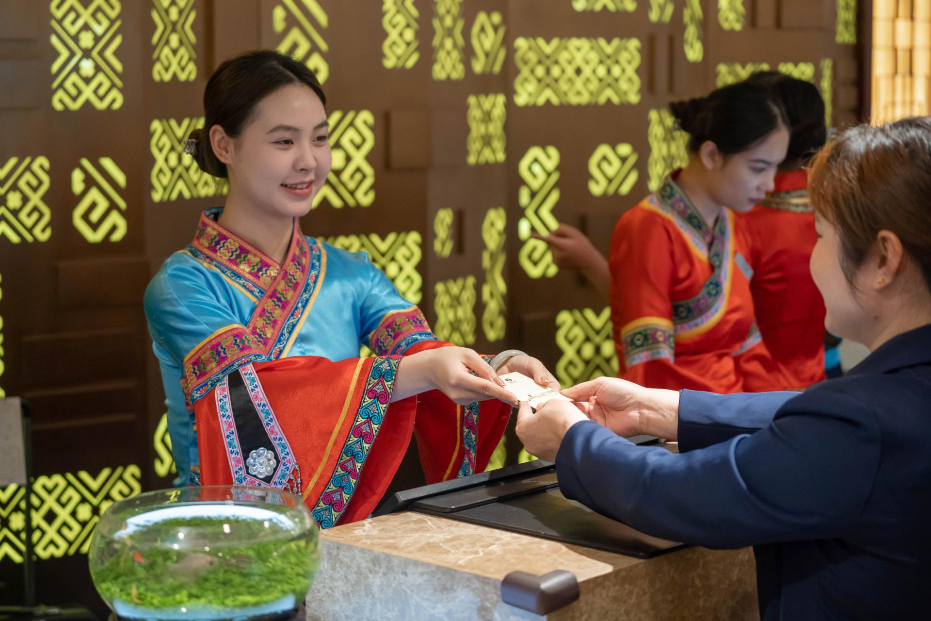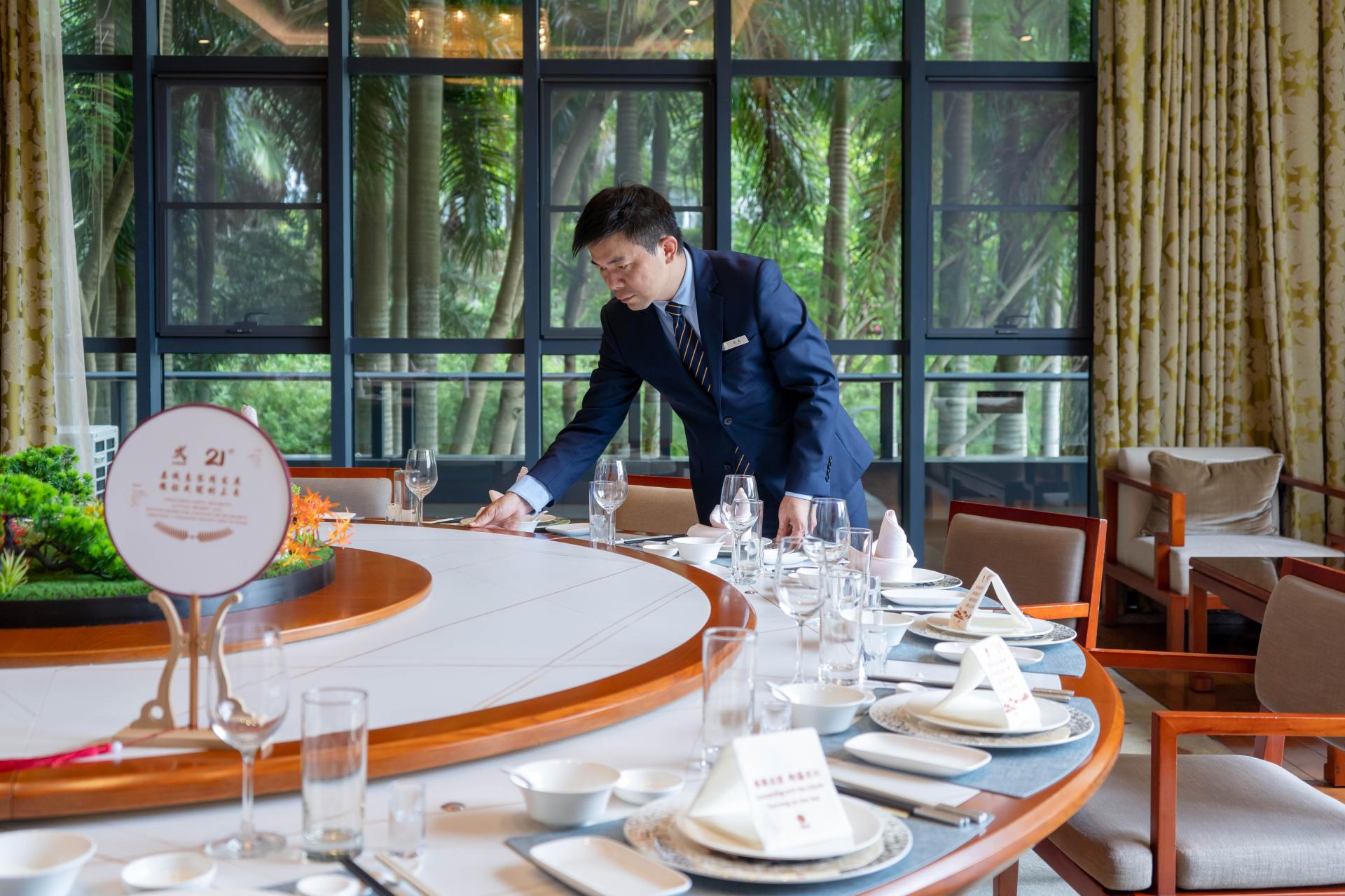 在接待過(guò)程中,五象山莊全體員工秉承“超越期望,誠(chéng)心為您”的服務(wù)理念,以熱情、周到、細(xì)致的態(tài)度為賓客提供溫情備至的客房、餐飲和會(huì)議服務(wù)。為了照顧不同國(guó)家賓客的信仰及風(fēng)俗習(xí)慣,山莊銷售團(tuán)隊(duì)通過(guò)前期與會(huì)務(wù)組的充分溝通與了解,組織員工進(jìn)行專項(xiàng)培訓(xùn);客房部為了營(yíng)造溫馨、舒適、優(yōu)雅的住宿氛圍,對(duì)客房進(jìn)行精心布置和美化,一個(gè)東博會(huì)的主題logo,一句暖心的問(wèn)候祝福語(yǔ)便讓賓客感受到家的溫馨;餐飲部在餐桌及會(huì)場(chǎng)布置方面融入廣西銅鼓、繡球等傳統(tǒng)文化元素,不僅帶給賓客尊貴感和驚喜體驗(yàn)感,同時(shí)也讓賓客感受到獨(dú)特而又熱情的壯鄉(xiāng)文化與待客之道;宴會(huì)部提供了優(yōu)質(zhì)、專業(yè)的會(huì)議服務(wù),確保會(huì)議的順利進(jìn)行;工程部隨時(shí)配合設(shè)施設(shè)備的維護(hù)及關(guān)鍵機(jī)房不間斷值守;安保部則24小時(shí)待命,嚴(yán)密巡查停車場(chǎng)、監(jiān)控中心,指揮停車秩序等,竭力保障住宿、會(huì)議場(chǎng)所的安全……這些細(xì)致入微的優(yōu)質(zhì)服務(wù)只為讓各方賓客真實(shí)感受到廣西熱情、周到的服務(wù),也讓每一位入住五象山莊的賓客在下榻期間倍感舒適與享受,留下一段美好的入住體驗(yàn)。