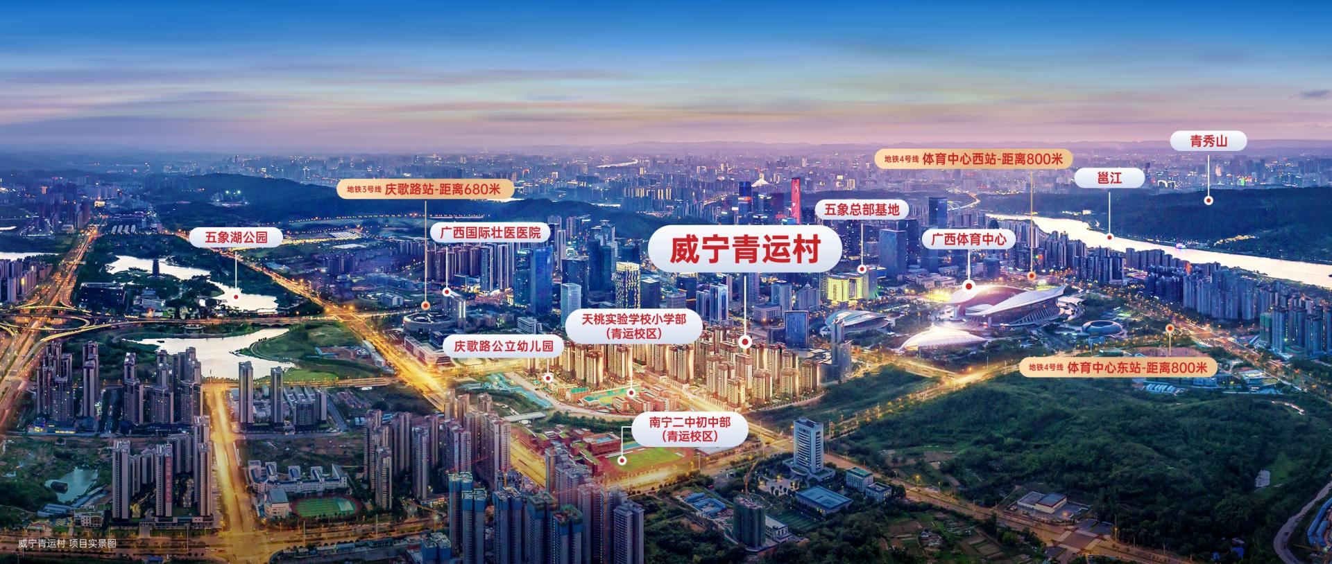 威寧青運村地處五象總部基地、億級廣西體育中心旁的稀貴地段。擁享“兩橫三縱三橋”交通路網(wǎng)加雙地鐵(3號線、4號線)構(gòu)筑立體大交通,高規(guī)格暢享商務(wù)、教育、交通、醫(yī)療、生態(tài)等全優(yōu)資源配套。