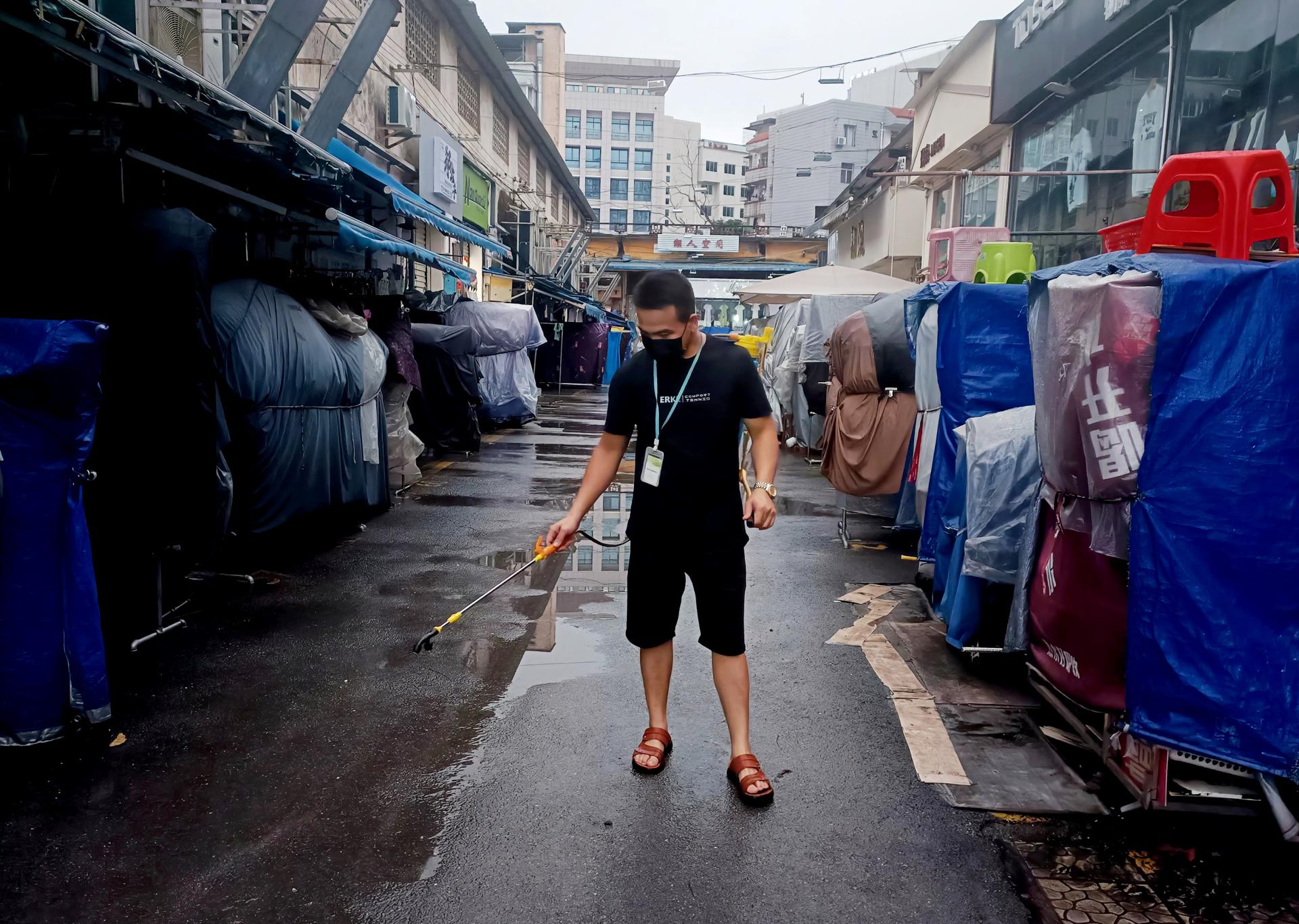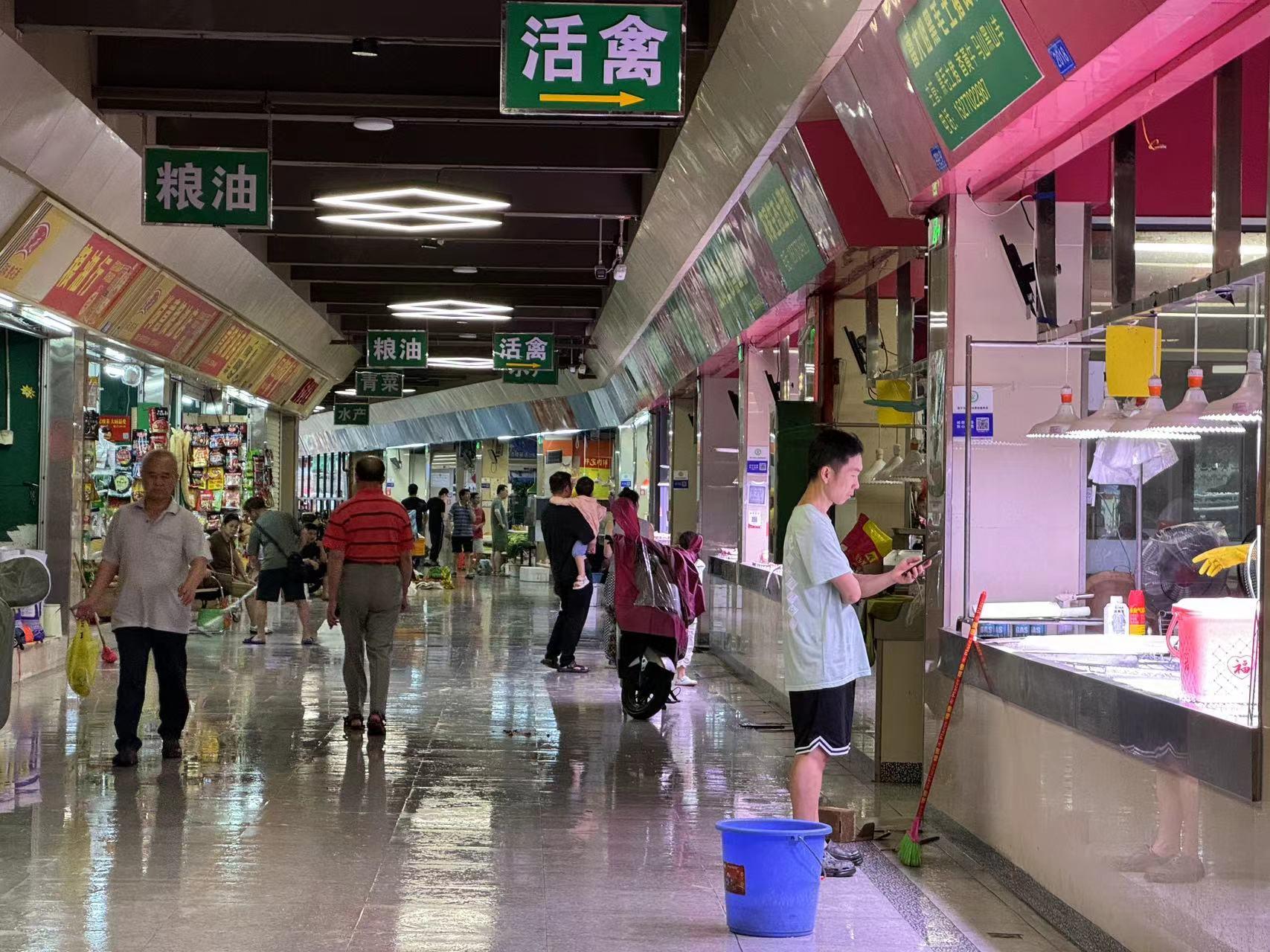 市場管理員開展汛后市場消毒