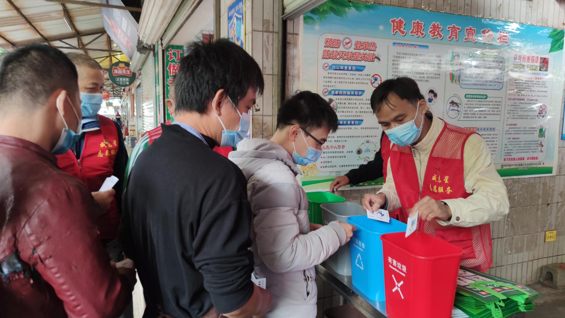 活動(dòng)現(xiàn)場,黨員志愿者化身“生活垃圾分類宣講員”,走攤?cè)脘佇麄髁私馐袌鼋?jīng)營戶對垃圾分類的意見建議,向前來市場購物的市民顧客發(fā)放垃圾分類宣傳冊,講解生活垃圾的分類類別、投放方式以及有害垃圾的處理方法,同時(shí)開展了垃圾分類知識(shí)競答、模擬投放益智游戲活動(dòng),通過寓教于樂的方式,號召大家積極學(xué)習(xí)、掌握分類知識(shí),并正確引導(dǎo)身邊的人樹立垃圾分類意識(shí)。