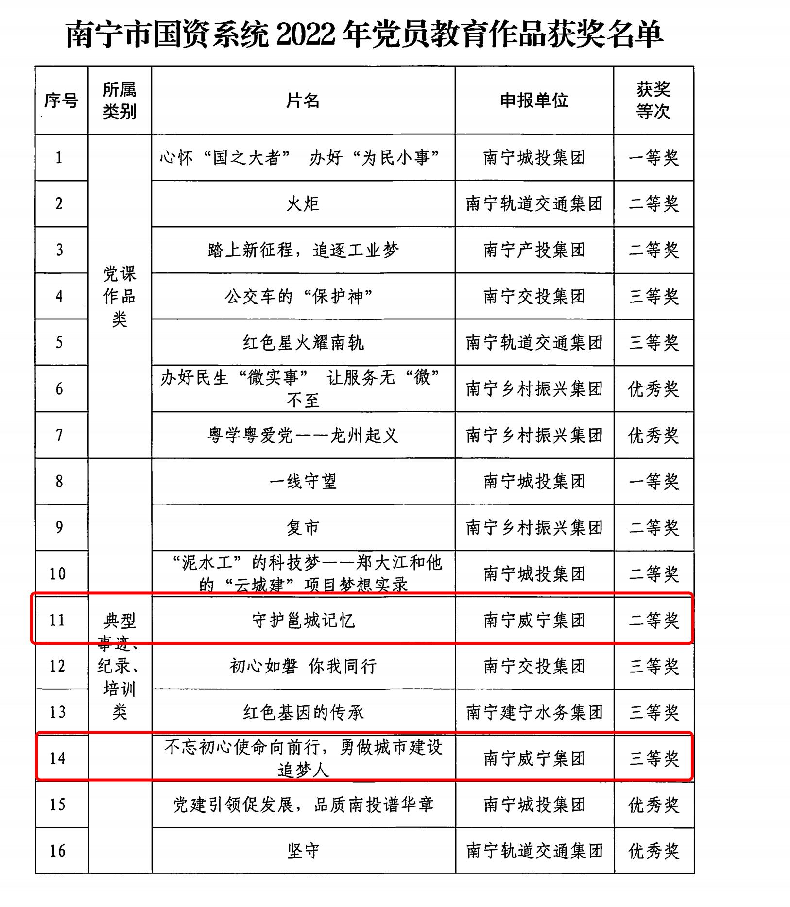 同時,公司黨委聚焦品牌建設(shè)亮點,在今年上半年市國資委黨委開展的“喜迎二十大建功新時代”創(chuàng)先爭優(yōu)系列活動上,聯(lián)合威凱智慧物業(yè)公司黨支部共同打造“老南寧·三街兩巷”黨員教育視頻《守護邕城記憶》,榮獲二等獎。