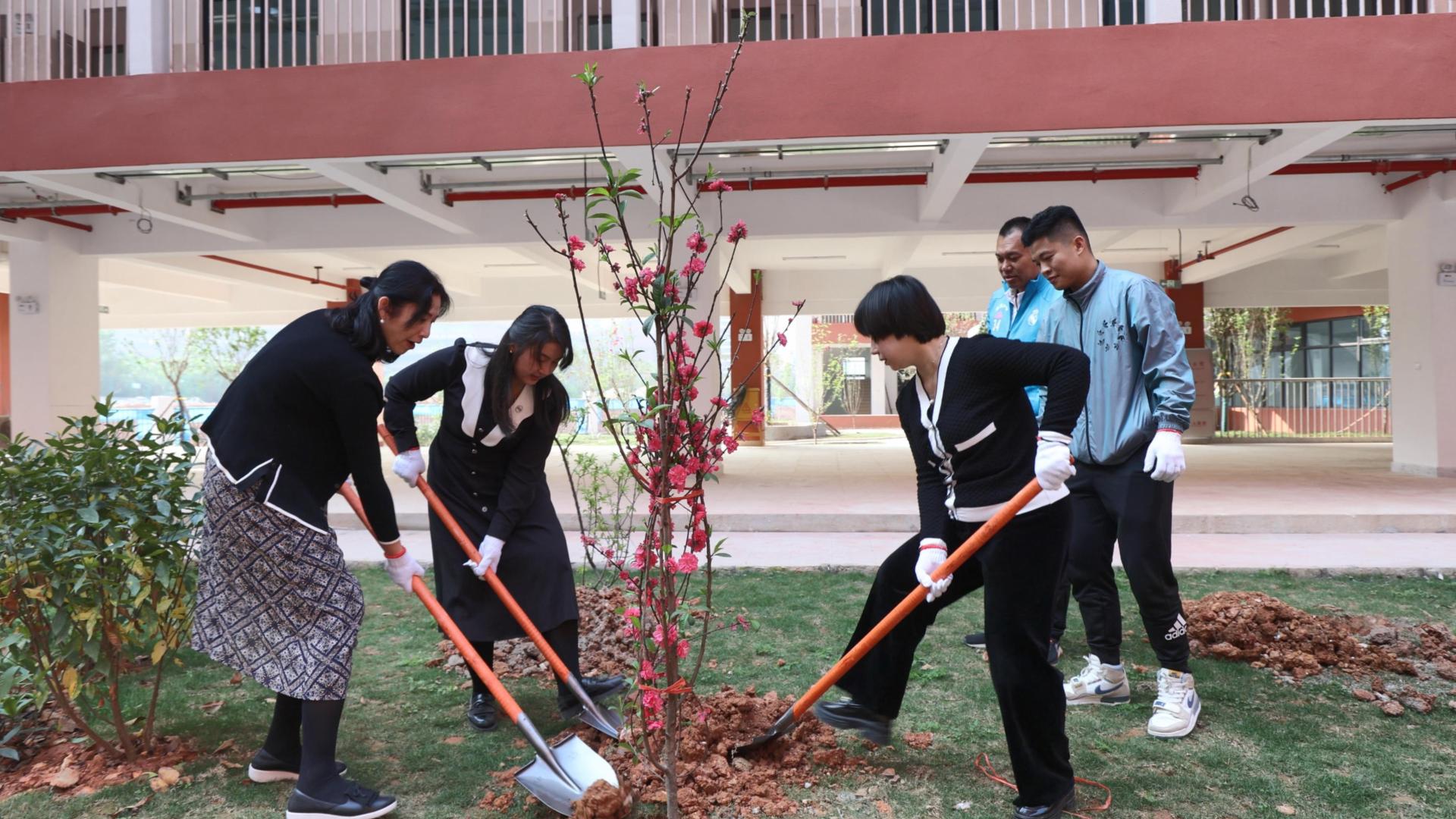 陽春三月,威寧青運(yùn)村項(xiàng)目周圍春暖花開、吐露新綠,春花燦爛映襯著項(xiàng)目拔地而起的樓棟建筑,承托著鱗次櫛比的教育配套設(shè)施。本次植樹志愿活動(dòng),選取了南寧二中初中部(青運(yùn)校區(qū))、天桃實(shí)驗(yàn)學(xué)校小學(xué)部(青運(yùn)校區(qū))的兩個(gè)區(qū)域,種下桃樹和李樹共植青運(yùn)林,寓意在這學(xué)習(xí)工作的師生能桃李芬芳、教澤綿長(zhǎng)。