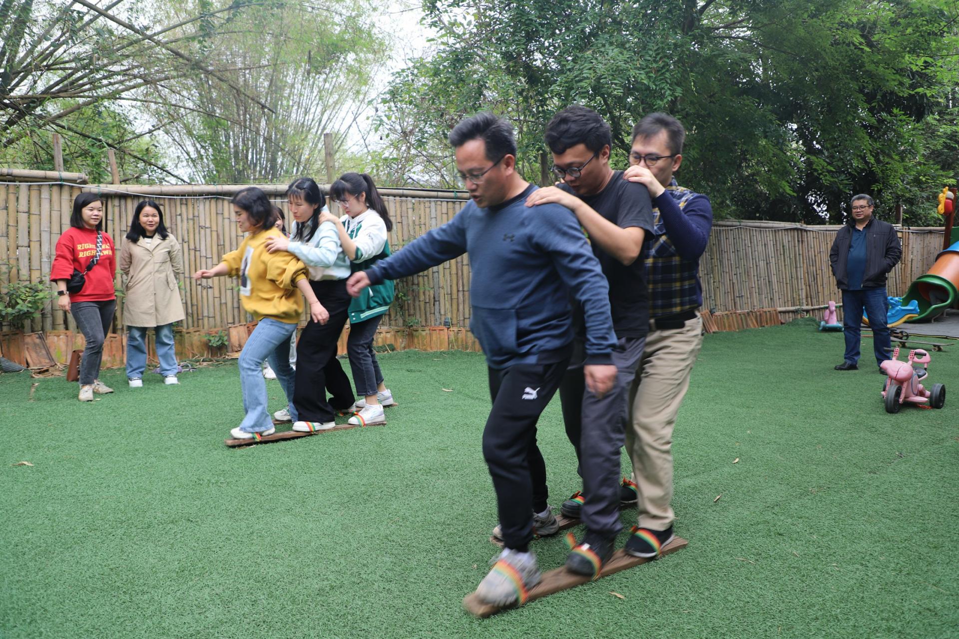 當(dāng)天下午,青年職工們齊聚素質(zhì)拓展,蓄勢(shì)待發(fā)迎接挑戰(zhàn)。此次戶外拓展將挑戰(zhàn)與趣味融合,競(jìng)爭(zhēng)與娛樂(lè)一體,共設(shè)置了“乒乓球、壯鄉(xiāng)板鞋、竹簍繡球等文體項(xiàng)目。活動(dòng)現(xiàn)場(chǎng)熱火朝天,吶喊助威聲充滿整個(gè)賽場(chǎng),精彩的文體活動(dòng)不斷將比賽氛圍推向新的高潮。