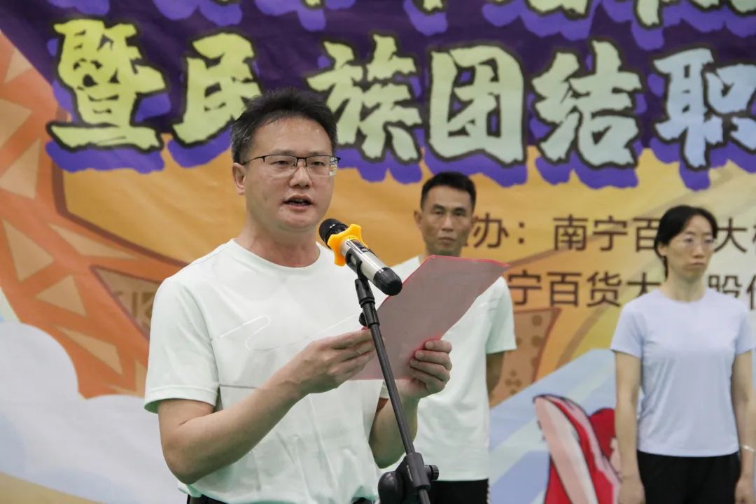 為展現南百職工良好的精神風貌,弘揚民族團結精神,4月19日,南寧百貨第十屆職工文化藝術節(jié)開幕式暨民族團結職工氣排球比賽在南寧市文化宮球館盛大開幕。公司全體領導班子出席開幕式,公司黨委書記、董事長覃耀杯致開幕詞,公司黨委副書記、工會主席莫雄禮主持開幕。