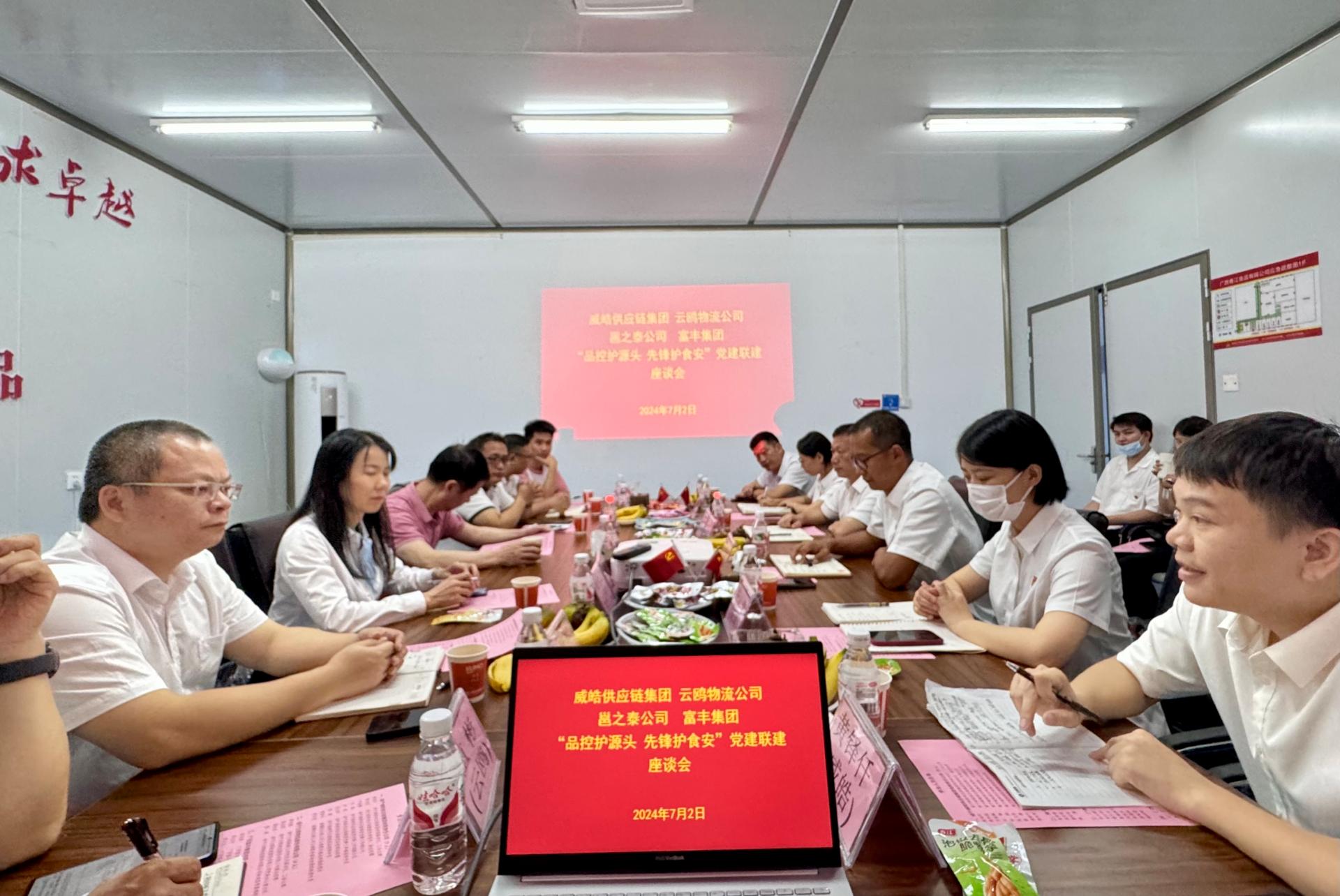 為進(jìn)一步發(fā)揮黨組織在業(yè)務(wù)發(fā)展上的凝聚力和引領(lǐng)力,激發(fā)先鋒力量從源頭把控食材品質(zhì),近日,由威皓供應(yīng)鏈集團(tuán)黨委牽頭,“商貿(mào)供應(yīng)鏈”黨建聯(lián)盟各成員單位走進(jìn)廣西富豐集團(tuán)以及其所屬?gòu)V西春江供應(yīng)鏈有限公司,開(kāi)展“品控護(hù)源頭 先鋒護(hù)食安”聯(lián)建交流活動(dòng)。