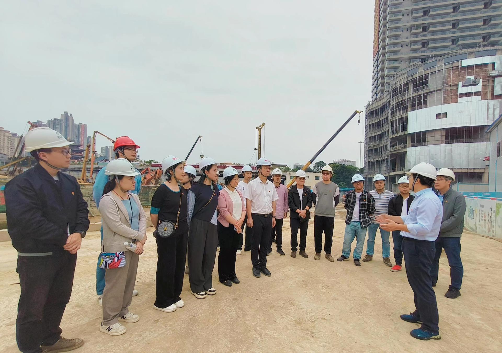 離開三街兩巷,黨員們來到公司負(fù)責(zé)建設(shè)的中山路、水街等PPP項(xiàng)目工地,現(xiàn)場(chǎng)了解施工情況。中山路、水街作為老南寧文化發(fā)源地,承載著老南寧人的記憶,也是正在打造的邕州古城的重要組成部分。在項(xiàng)目負(fù)責(zé)人的介紹下,公司“威創(chuàng)客”團(tuán)隊(duì)了解到中山路項(xiàng)目正在開展土方開挖、主體施工和強(qiáng)弱電遷改,部分樓棟已完成主體封頂,累計(jì)完成項(xiàng)目整體產(chǎn)值約34%;水街項(xiàng)目已累計(jì)完成98.6%基坑支護(hù)工程、約12萬立方土方工程、約7萬立方樁芯土外運(yùn)。針對(duì)目前項(xiàng)目推進(jìn)過程中的疑難問題,“威創(chuàng)客”成員就如何解決問題展開討論,結(jié)合本職工作提出思考和建議。