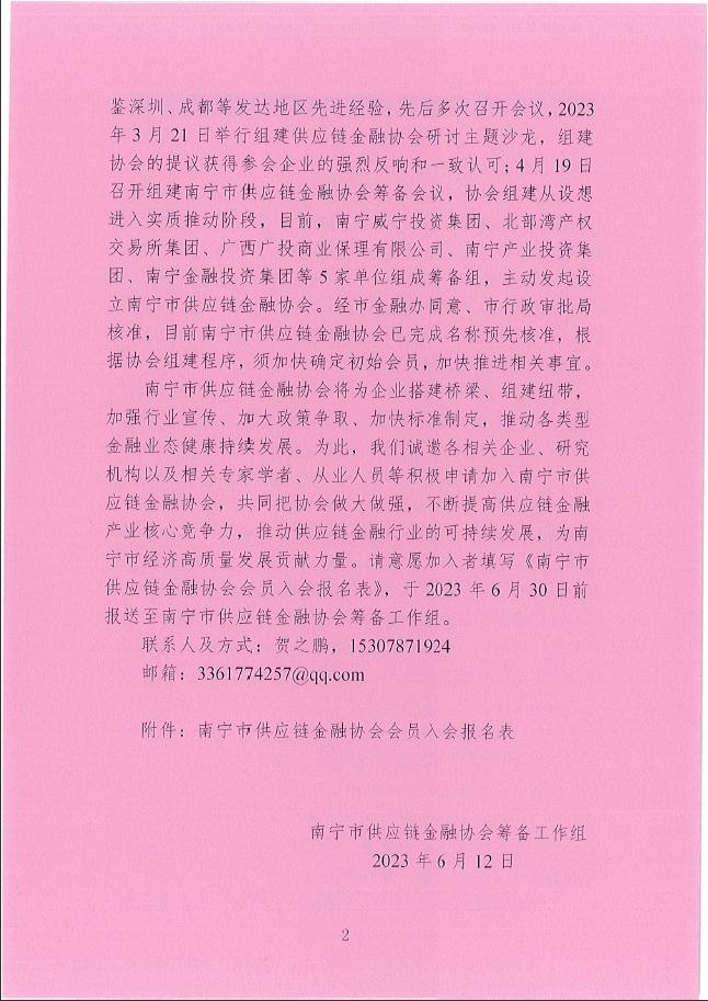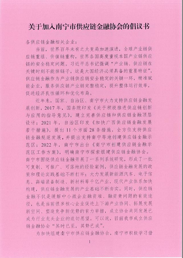 關(guān)于加入南寧市供應(yīng)鏈金融協(xié)會(huì)的倡議書(shū)