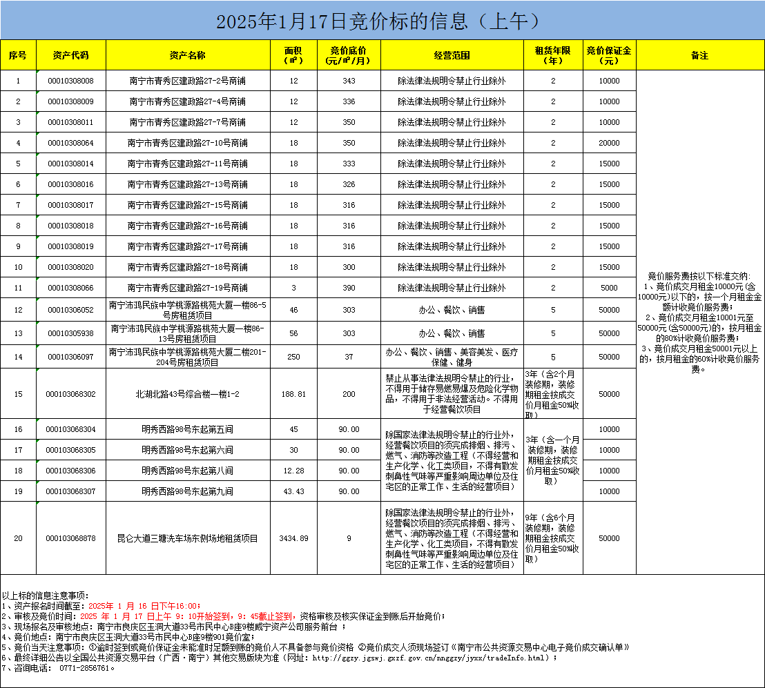 2025年1月17日競價標的信息(現(xiàn)場競價)