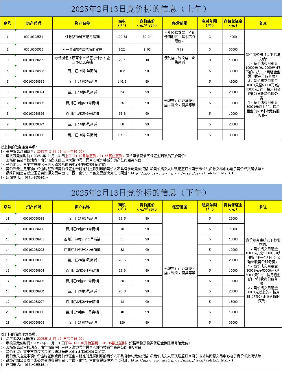 2025年2月13日競(jìng)價(jià)標(biāo)的信息(現(xiàn)場(chǎng)競(jìng)價(jià))