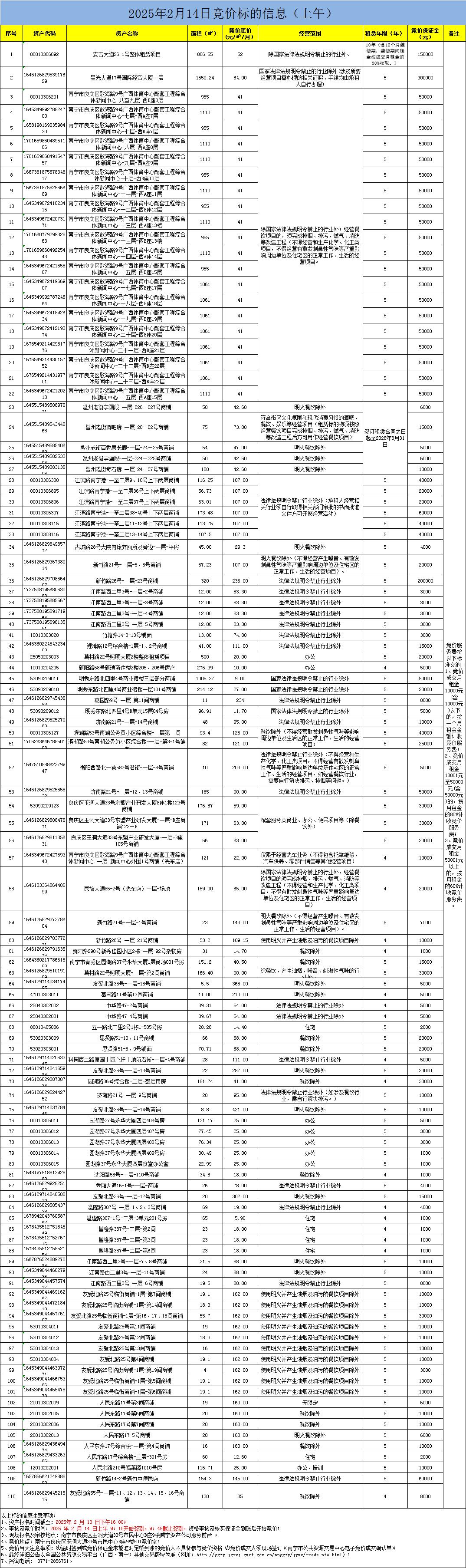 2025年2月14日競價標的信息(現(xiàn)場競價)