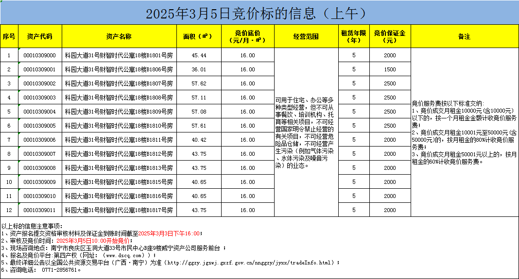 2025年3月5日競價(jià)標(biāo)的信息(線上競價(jià))