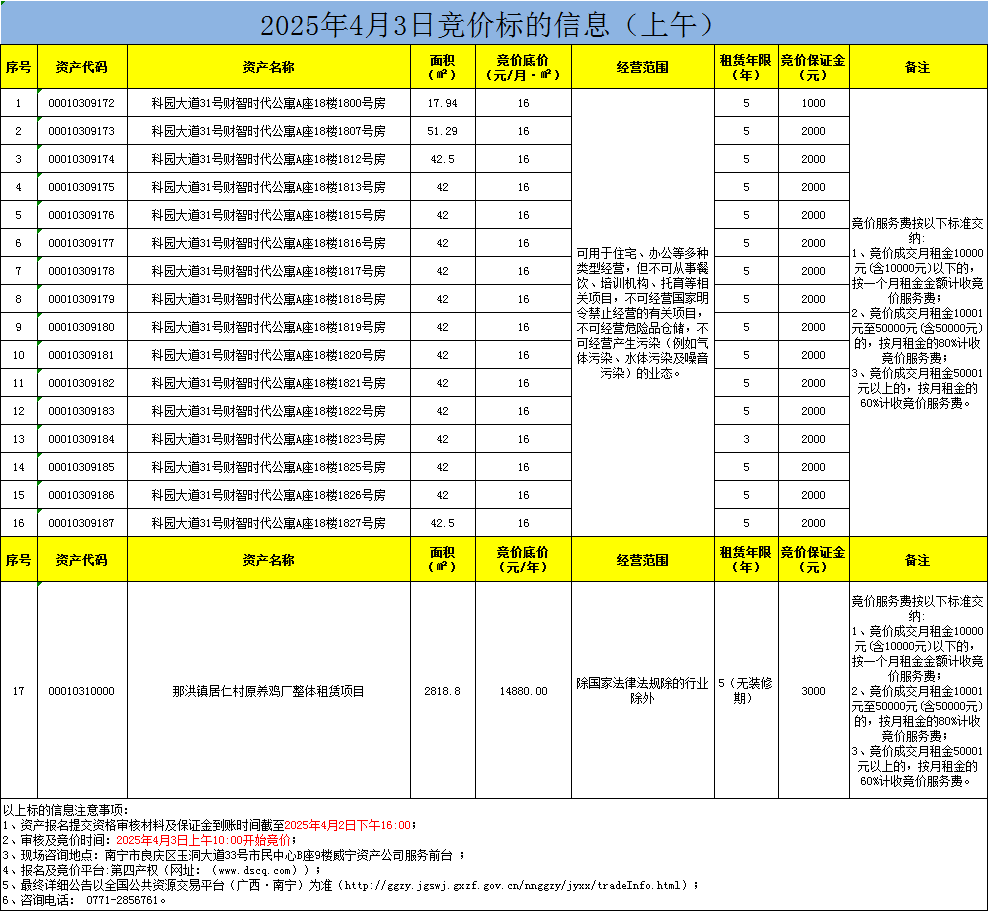2025年4月3日競價標的信息(線上競價)