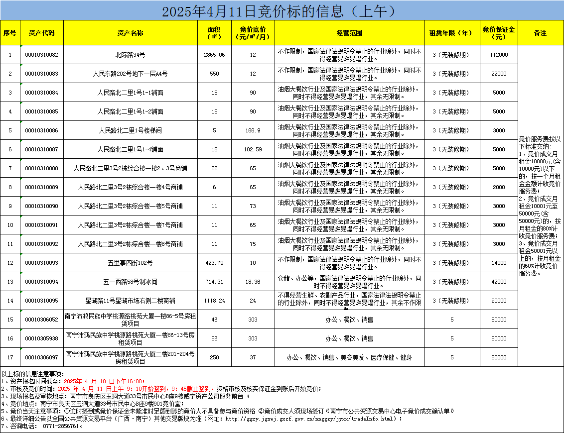 2025年4月11日競(jìng)價(jià)標(biāo)的信息(現(xiàn)場(chǎng)競(jìng)價(jià))