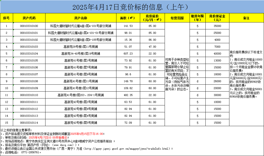 2025年4月17日競價標的信息(線上競價)