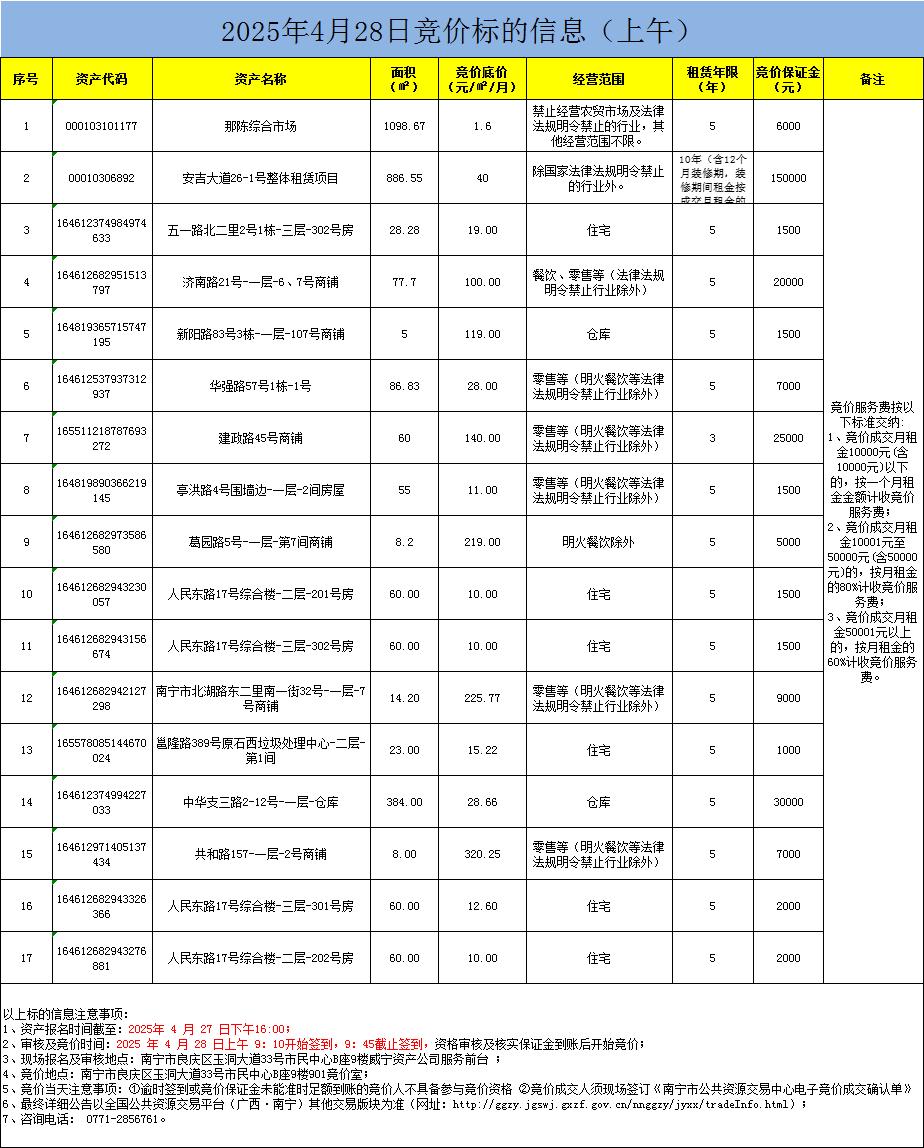 2025年4月28日競(jìng)價(jià)標(biāo)的信息(現(xiàn)場(chǎng)競(jìng)價(jià))