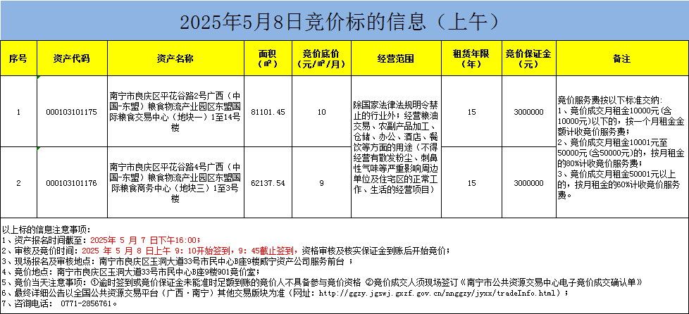 2025年5月8日競(jìng)價(jià)標(biāo)的信息(現(xiàn)場(chǎng)競(jìng)價(jià))