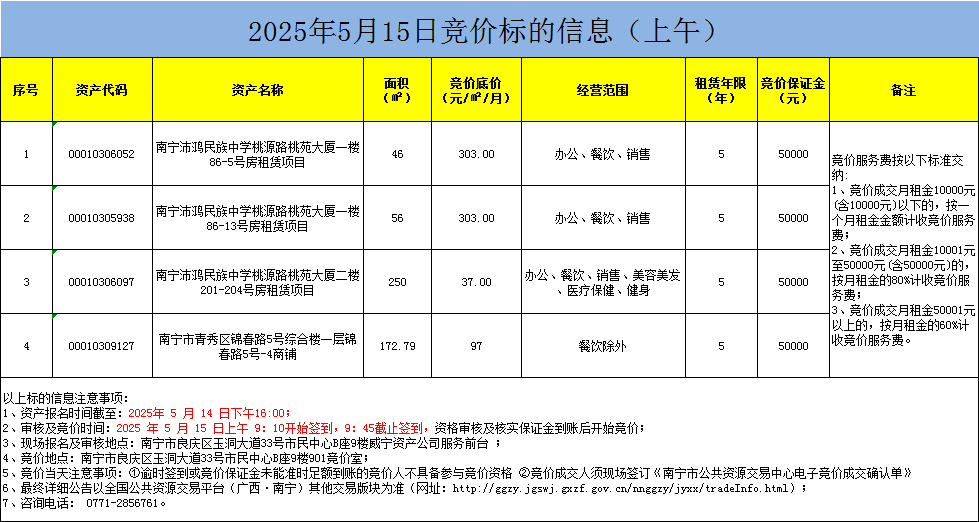 2025年5月15日競價標的信息(現(xiàn)場競價)