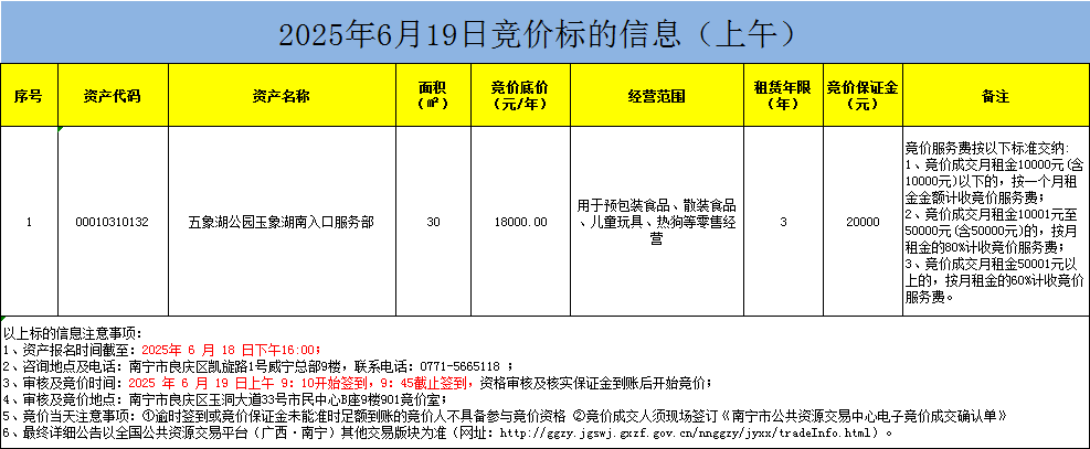 2025年6月19日競(jìng)價(jià)標(biāo)的信息(現(xiàn)場(chǎng)競(jìng)價(jià))