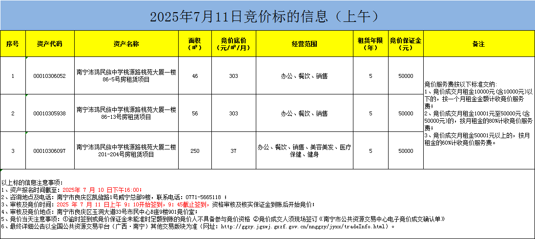 2025年7月11日競價標(biāo)的信息(現(xiàn)場競價)