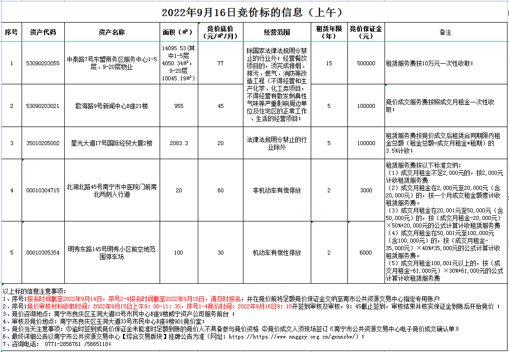 威寧資產(chǎn)公司2022年9月16日公開競價(jià)標(biāo)的信息